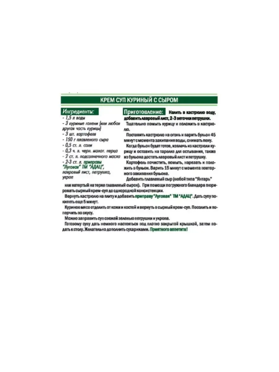 Рассольник с говядиной, бульон с овощами, томатный соус приобретут новый, более яркий вкус, если добавить во время приготовления набор пряностей "Луговая".