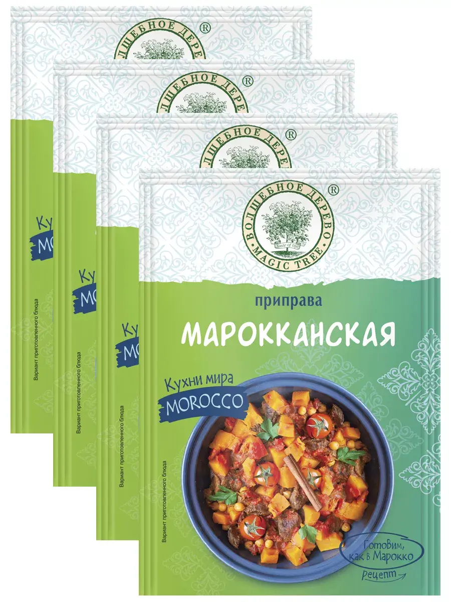 Марокканская приправа – гармоничное сочетание африканского и восточного колорита и традиций. Прекрасное сочетание теплых специй, она включают черный перец, имбирь, куркуму, корицу, кардамон, гвоздику и мускатный орех. Приправа подойдет для супов и блюд из мяса, птицы, кускуса, риса, булгура, овощей. Приправа одарит вкус блюд мягкой остротой, терпко-сладким послевкусием и волшебным ароматом. Экзотическая и вкусная приправа! В комплекте 4 пакетика по 22г.