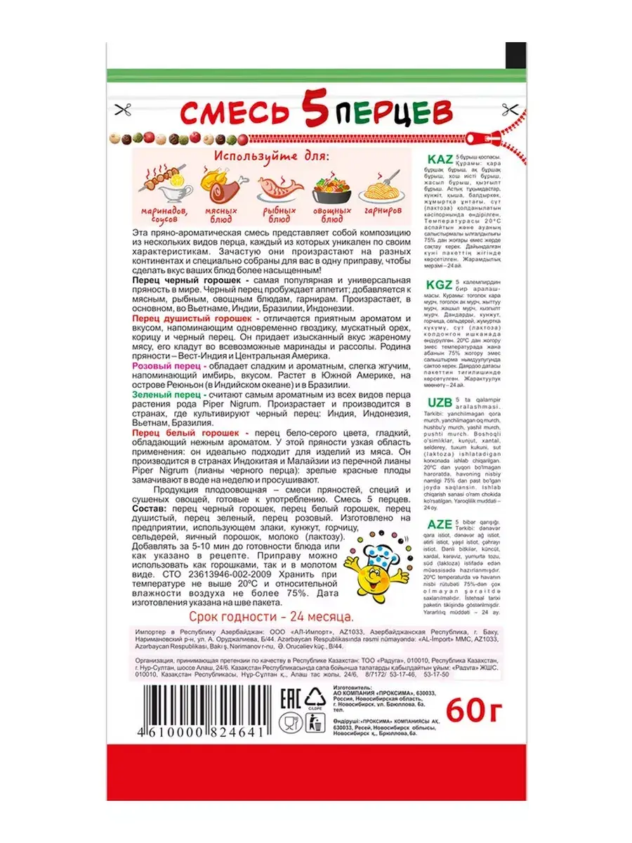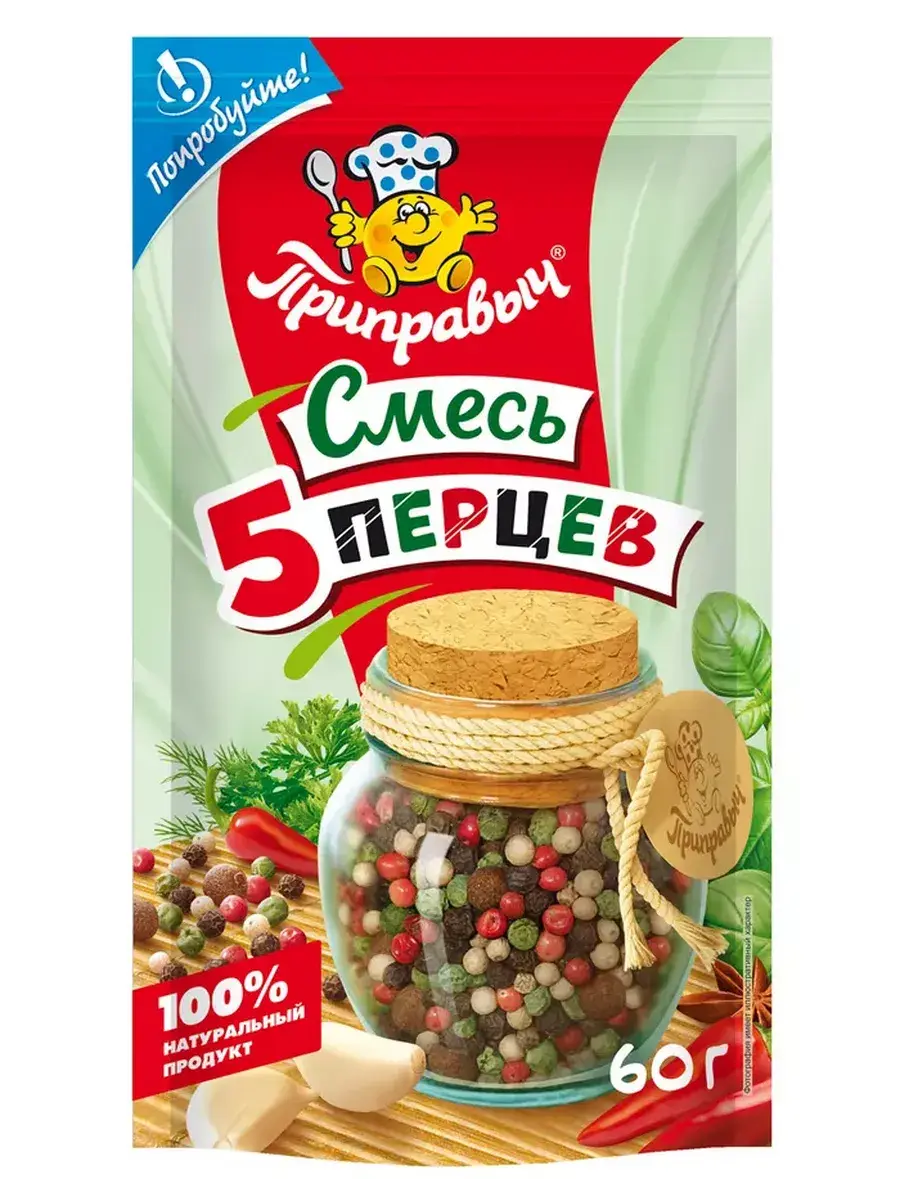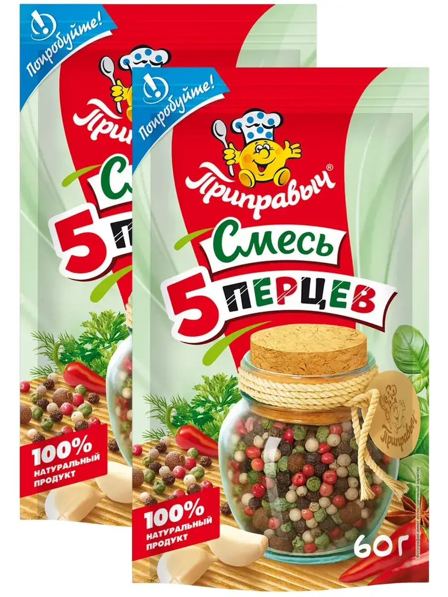 Эта пряно-ароматическая смесь представляет собой композицию из нескольких видов перца, каждый из которых уникален по своим характеристикам. Зачастую они произрастают на разных континентах и специально собраны для вас в одну приправу, чтобы сделать вкус ваших блюд более насыщенным! «Смесь 5 перцев» можно использовать при приготовлении маринадов, соусов, рассолов, она добавляется в различные блюда из мяса, рыбы и овощей; ее можно использовать как горошками, так и в молотом виде. Перец черный горошек - самая популярная и универсальная пряность в мире. В комплекте 2 пакетика по 60г.