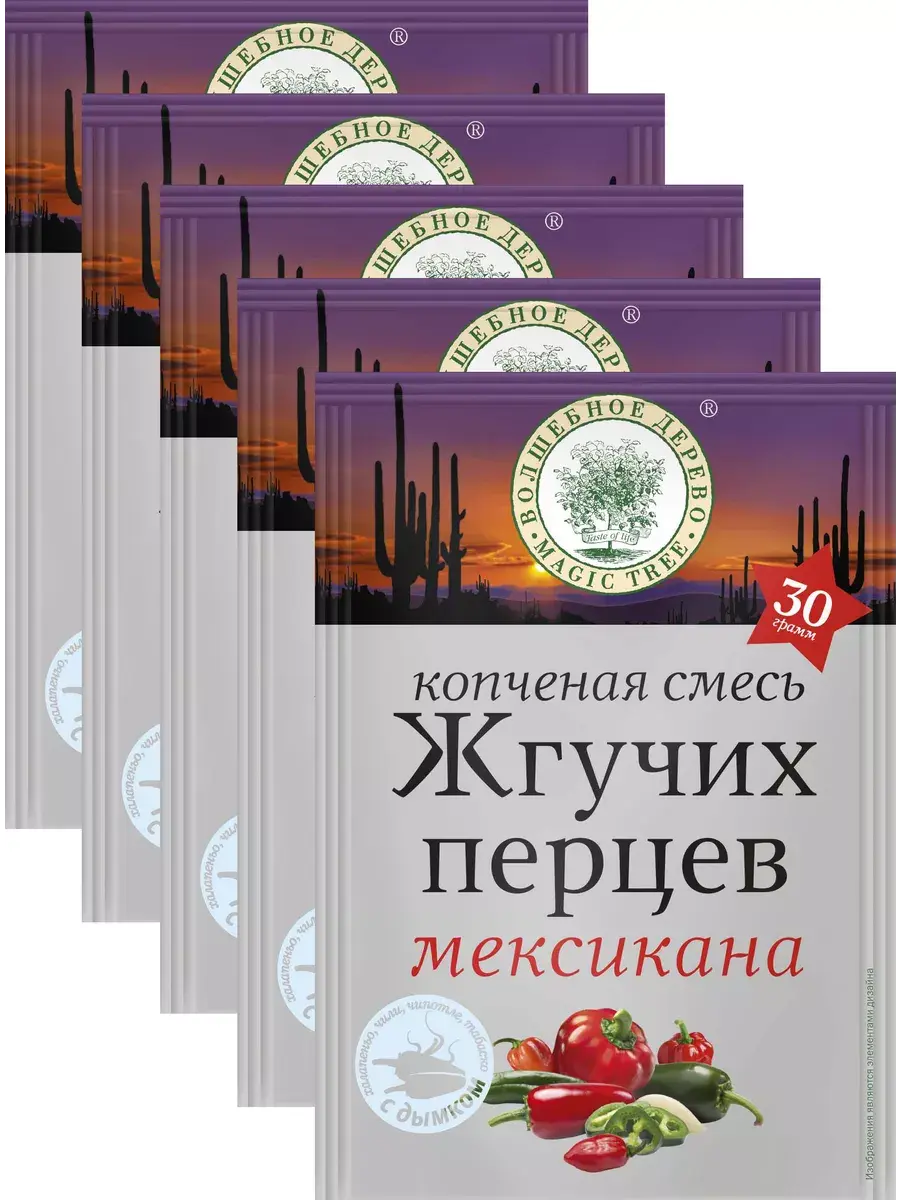 Копченая смесь жгучих перцев - это пряная, в меру жгучая смесь с ароматом копчения, идеально подходит для приготовления жареного, тушеного, запеченного на гриле мяса и птицы, овощных блюд, рыбы и морепродуктов, для супов, борщей и бульонов, соусов и подлив. С нашей смесью ваши блюда станут еще ароматнее и вкуснее! В комплекте 5 пакетиков по 30г.