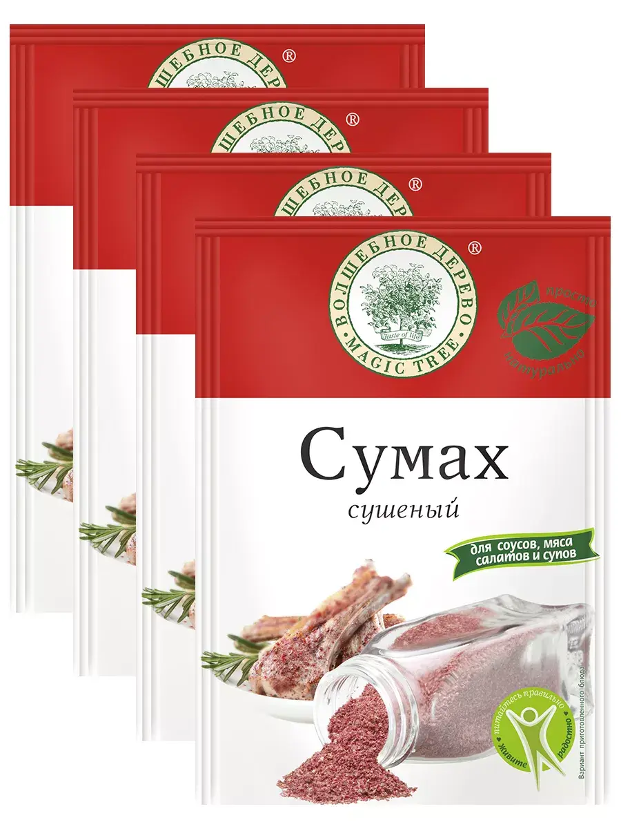 Персидская специя сумах обладает тонким вкусом с необычной кислинкой и насыщенным приятным ароматом. Отлично сочетается с луком - их смесь даже подают как закуску. Привносит в более тяжелые или жирные блюда легкость и свежесть, необычайно украшая их. Им посыпают разнообразные холодные и горячие блюда в конце приготовления, а в Турции и Иране эту специю обязательно используют, готовя плов. Очень красиво и аппетитно выглядит сумах на бутербродах. Сумах - отличная добавка к фасолевым и гороховым супам, а также хумусу. В комплекте 4 пакетика по 20г.