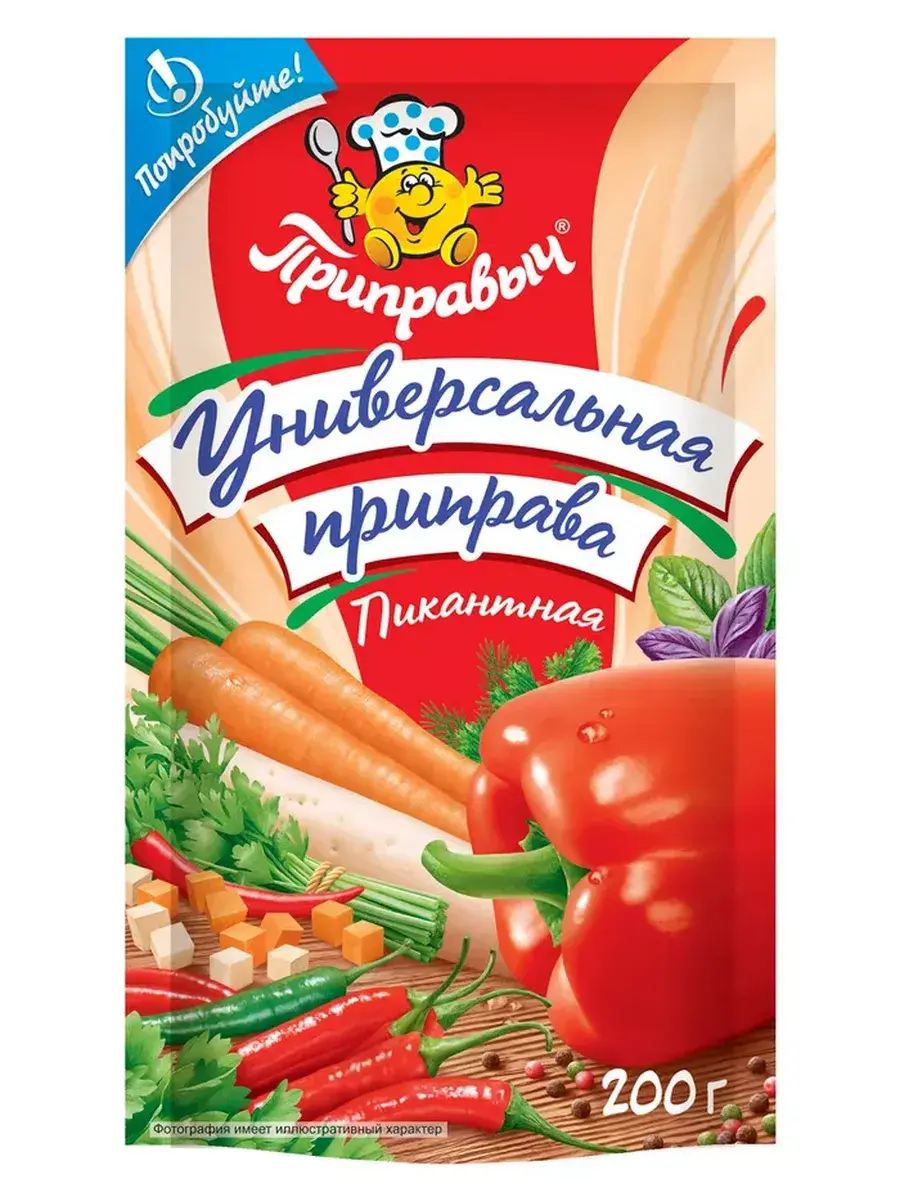 Приправа «Универсальная пикантная» – это изысканный букет ароматных пряных трав и сушеных овощей! Она придаст незабываемый вкус и подарит приятный аромат любым блюдам - супам, соусам, различным мясным, рыбным или овощным блюдам. А благодаря добавлению паприки, каждое из приготовленных вами блюд, приобретет оригинальный вкус и будет выглядеть очень аппетитно. Приправу следует добавлять за 15-20 мин. до готовности блюда. Всем нам известна польза овощей! Паприка – это лидер по количеству витамина С. Морковь улучшает работу печени, почек и замедляет процессы старения. Корень пастернака содержит витамины и микроэлементы, благотворно влияющие на организм. Зелень петрушки регулирует солевой обмен, выводит продукты распада из организма. Укроп способствует понижению артериального давления. Лук обладает бактерицидными свойствами, стимулирует деятельность поджелудочной железы и сердца. Учитывайте, что приправа уже содержит соль! В комплекте 2 штуки по 200г.