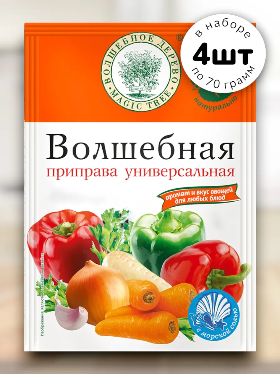 Универсальная приправа это смесь специй, пряностей, сушеных трав и овощей для приготовления всевозможных блюд. В состав приправы входят отборные овощи и травы, измельченные и высушенные специальным образом для сохранения их полезных веществ. Ее можно использовать при приготовлении любых блюд из мяса, птицы, рыбы, в крупяных и овощных гарнирах, салатах, в супах и бульонах. Приправа содержит соль, поэтому может заменить обычную соль при приготовлении горячих блюд, делая вкус продуктов более богатым и выразительным.