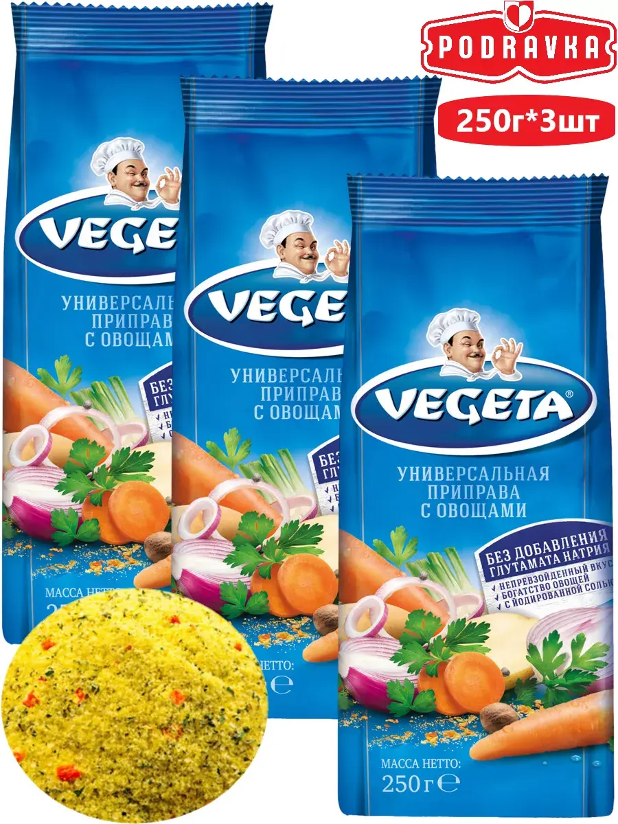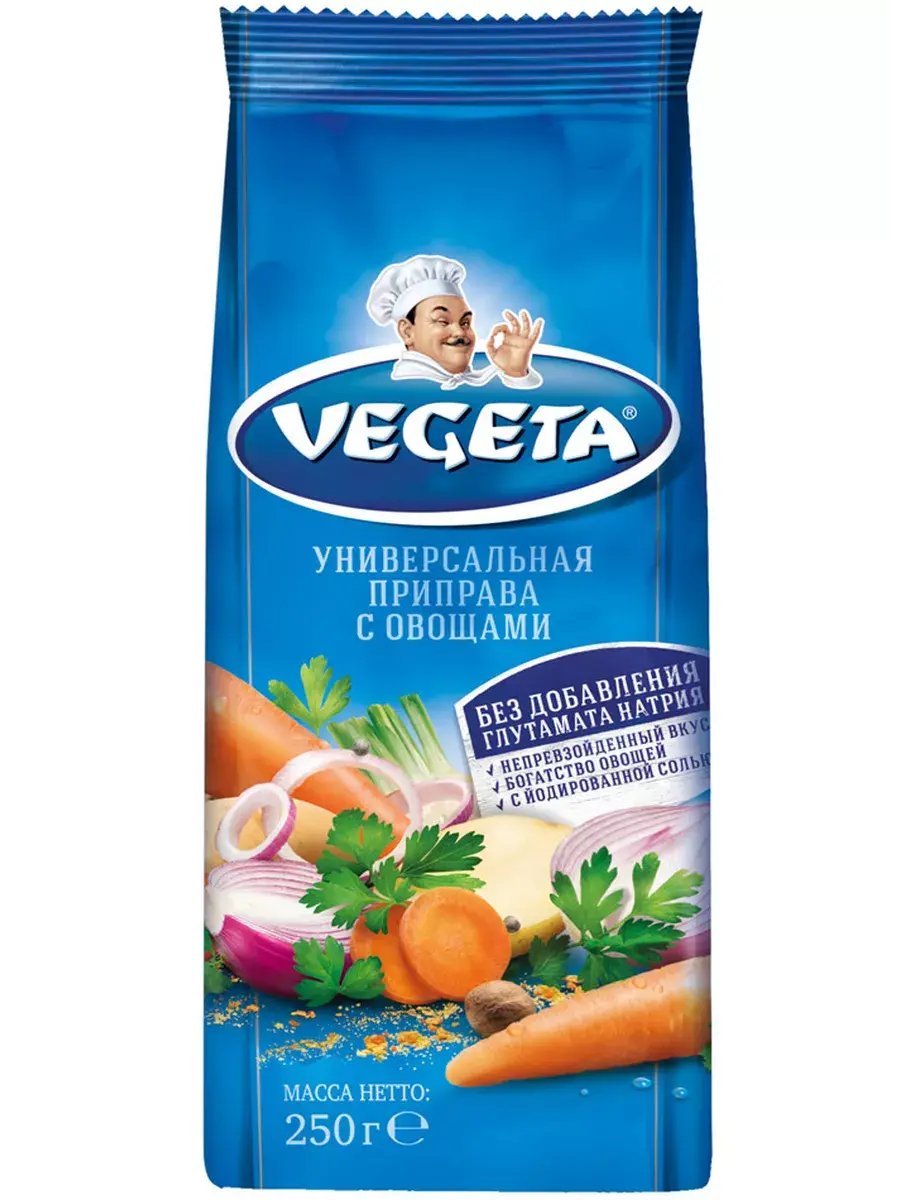 Для приготовления одной порции (250 мл) вареных или тушеных блюд (супов, соусов, риса, овощей или мяса) добавить одну чайную ложку (3 г) Вегеты за 5 минут до готовности блюда. Перед жаркой или запеканием мясо и рыбу посыпьте Вегетой с обеих сторон.