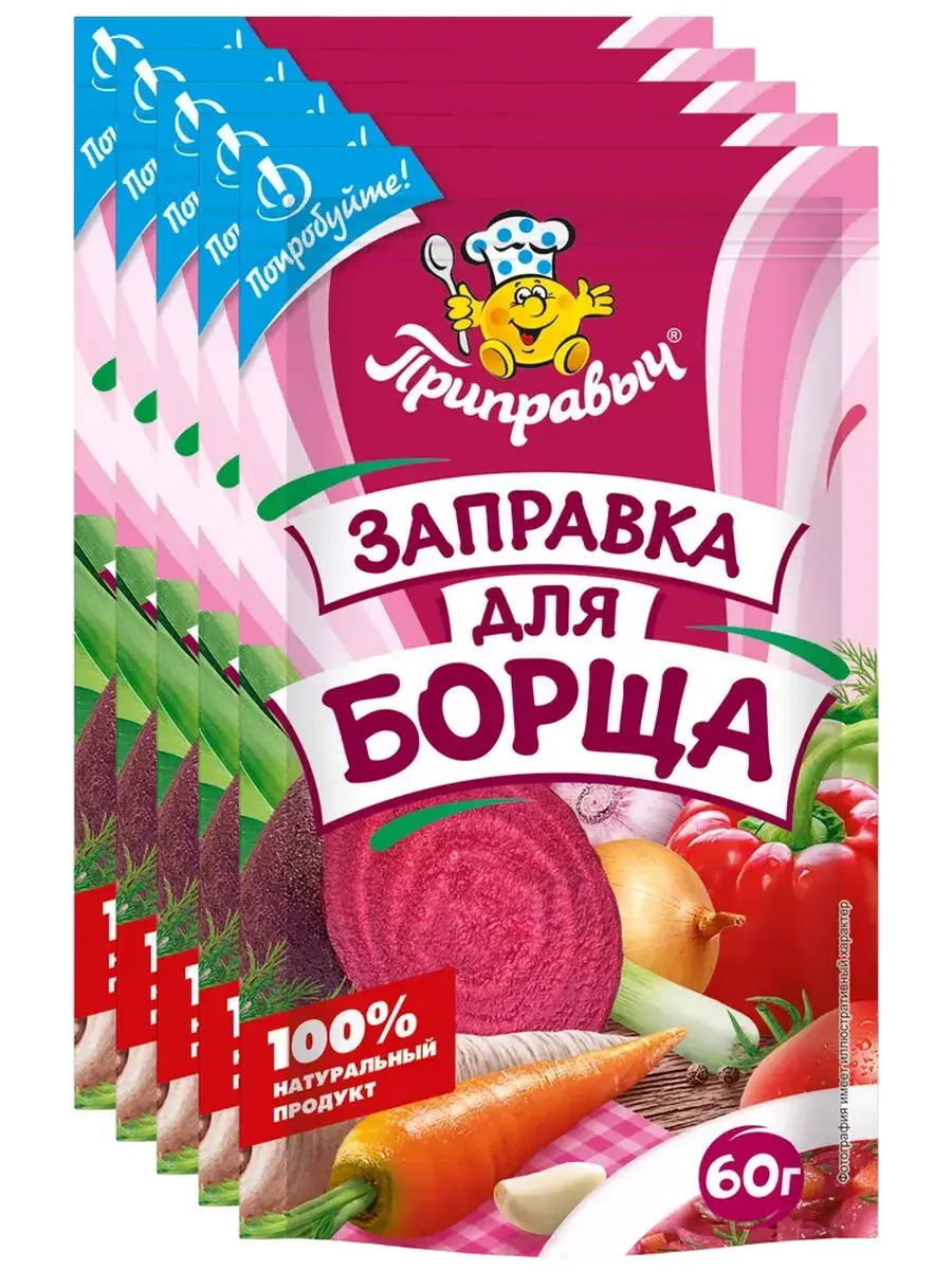 «Заправка для борща» от Приправыча – это высушенные кусочки овощей, с помощью которых вы сможете приготовить борщ, добавив их в подготовленный бульон с картофелем и капустой. Также вы можете использовать заправку в качестве дополнения к домашнему борщу для того, чтобы придать ему еще больше вкуса и аромата! Оптимально подобранный состав придает блюду традиционный домашний вкус и аппетитный аромат. Добавлять приправу рекомендуется за 15-20 минут до готовности блюда. Приятного аппетита! В комплекте 5 штук по 60г.