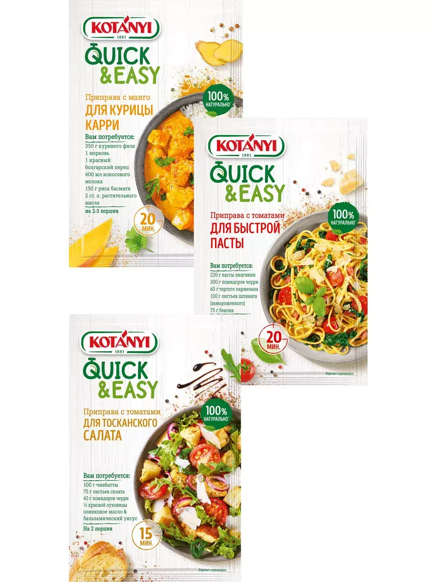 Приправа с томатами для быстрой пасты Quick & Easy от Kotányi позволяет быстро приготовить вкусную пасту, для которой вам понадобится лишь пять простых ингредиентов. Паста с невероятным ароматом. В рецепте используются 15 трав и специй, чтобы вы могли приготовить совершенно потрясающую пасту. Во время приготовления ингредиенты начнут раскрываться, и ваша кухня наполнится восхитительными средиземноморскими ароматами. И самое главное — блюдо будет полностью готово всего за 15 минут!