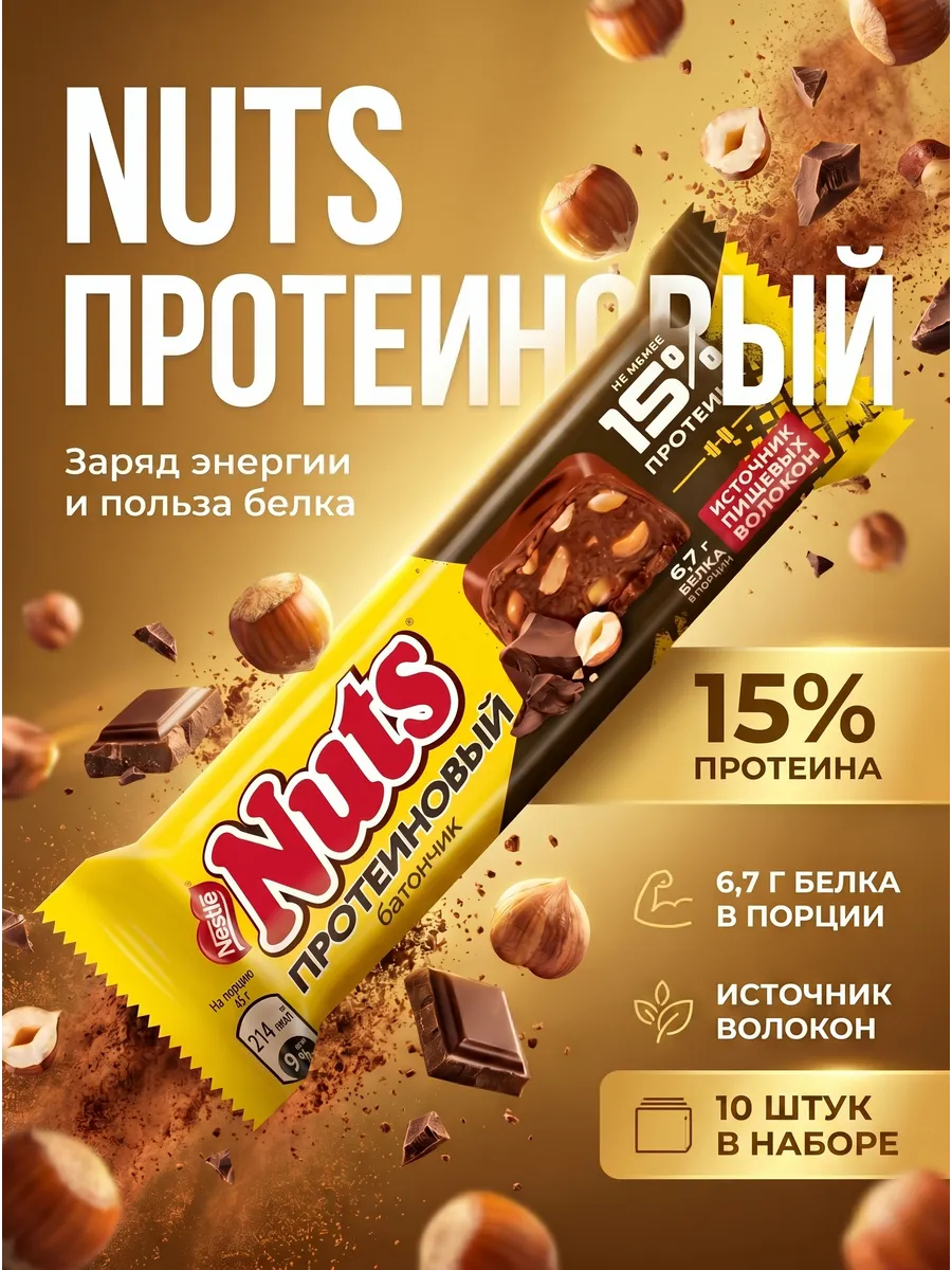 Протеиновый батончик Nuts — это идеальное сочетание нежного молочного шоколада, тягучей нуги и цельного фундука, усиленное порцией белка. Если вы ищете вкусный и полезный перекус, который удобно взять с собой на работу, учебу или тренировку, то этот батончик создан для вас.