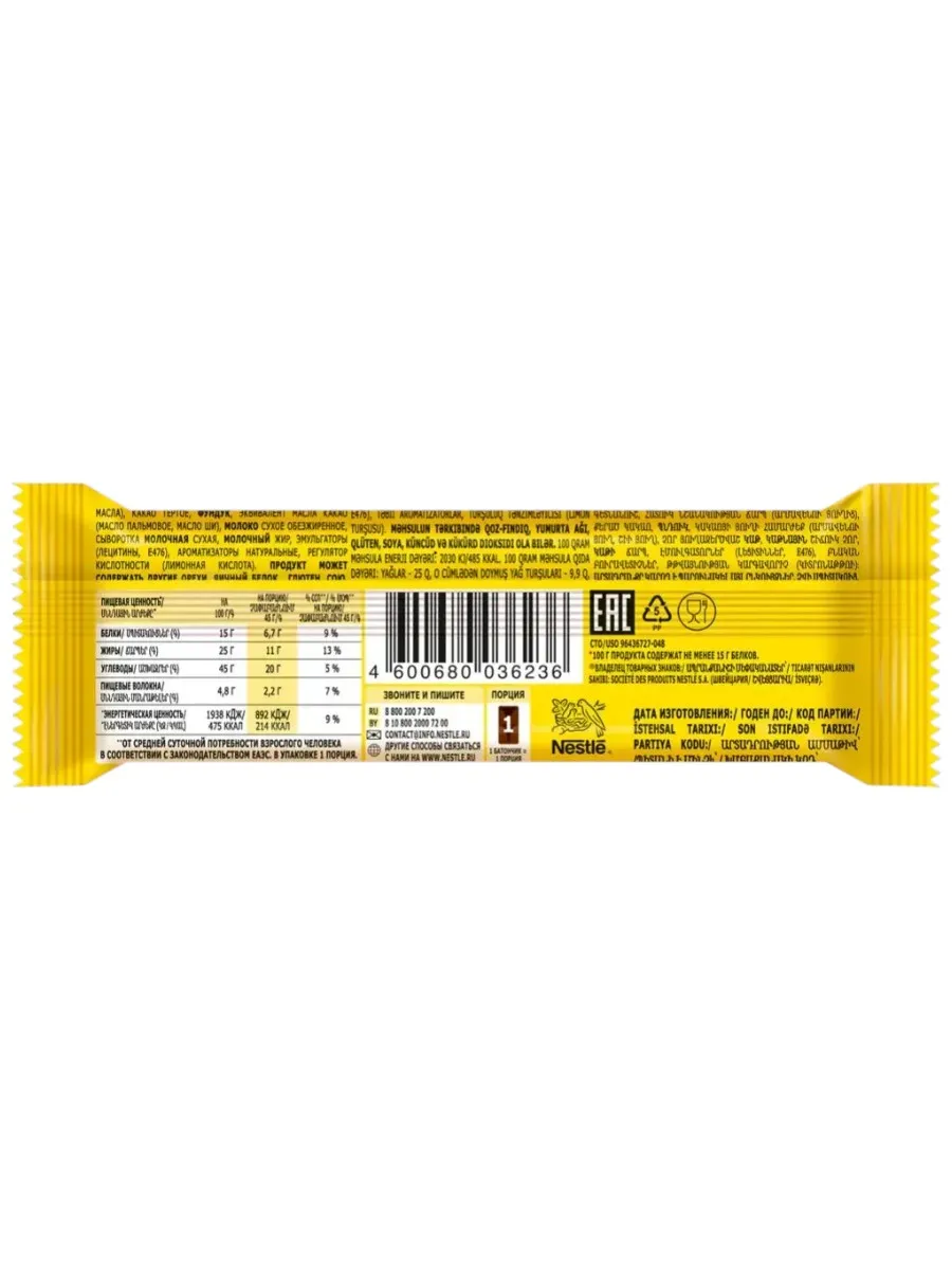 Классическое сочетание: Хрустящий фундук и мягкая нуга под слоем шоколада не оставят равнодушными любителей классического батончика.