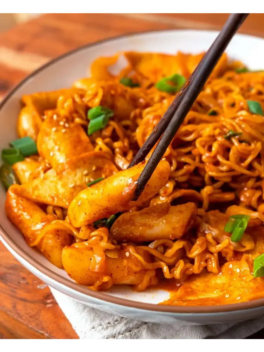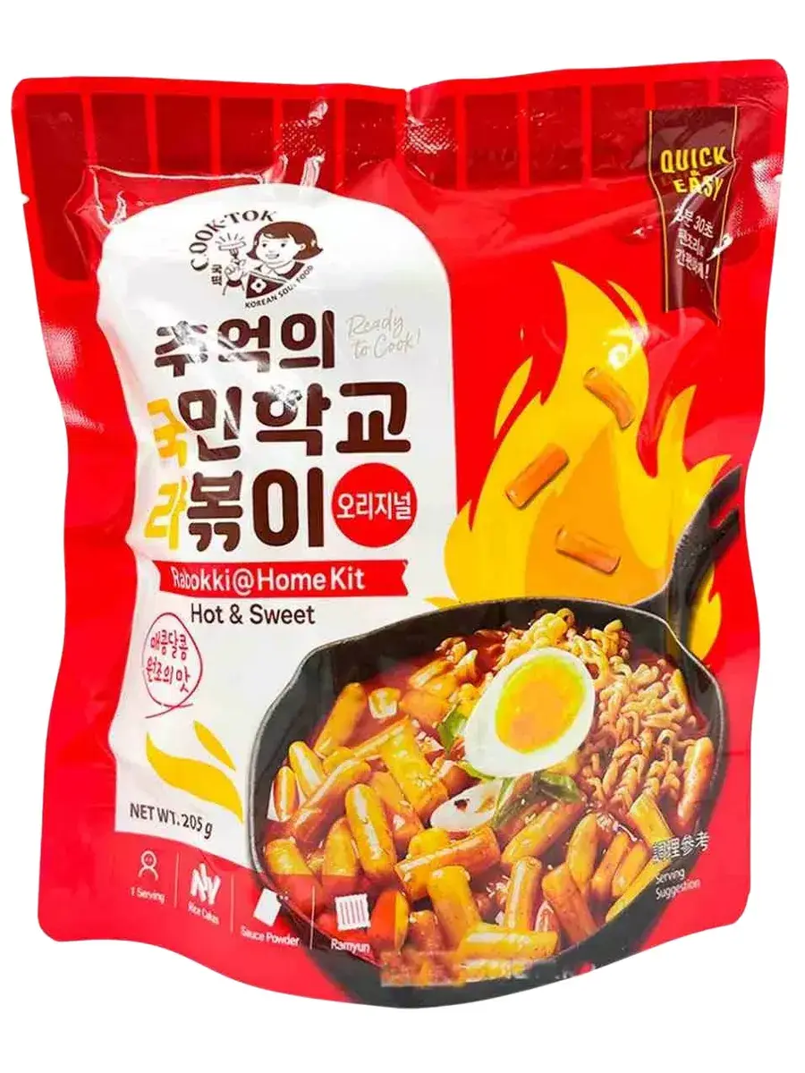 Рапокки в сладко-остром соусе (Hot & Sweet) корейского бренда Cook-Tok – это классическое корейское блюдо из смеси рисовых брусочков Тток и лапши рамен. Соус имеет традиционную для корейской кухни остро-сладкую вкусовую гамму. Степень остроты достаточная, чтобы ценители корейской еды возрадовались и получили предвкушаемое удовольствие. Пан-фрай токпокки – это отличный способ приготовить их с хрустящей корочкой снаружи и мягкостью внутри! Если нет сил или желания после работы возиться на кухне, рапокки в соусе – отличный вариант для трапезы, аппетитное и сытное блюдо готовится за несколько минут без особых хлопот. Нужно только добавить к ингредиентам из упаковки воду и прогреть до готовности. При желании можно дополнительно сервировать обед (или ужин) половинками вареного яйца, зеленью и другими топпингами на ваше усмотрение.