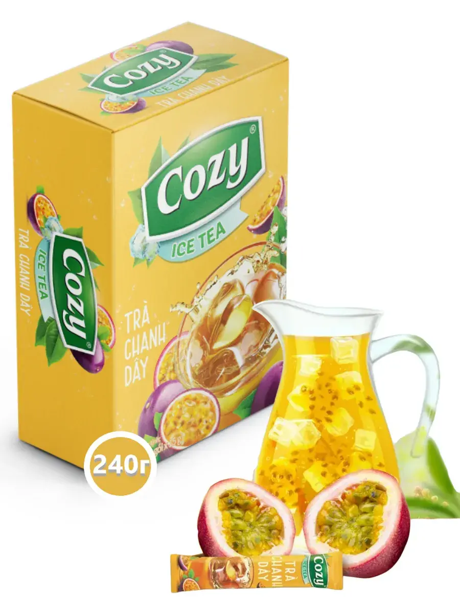 Откройте для себя утончённый вкус вьетнамского чая со вкусом освежающей маракуйи. Чай Cozy любим миллионами потребителей по всему миру за его уникальный аромат, вкус и настойку. Этот напиток создан, чтобы радовать вас в любое время дня. Вам понадобится всего 1 минута, чтобы приготовить уютный и ароматный чай. Положите 1 чайный пакетик в чашку, залейте 170 мл горячей (или холодной) воды, хорошо размешайте до растворения, по вкусу можно добавить кубики льда. В коробке 16 пакетиков по 15г.