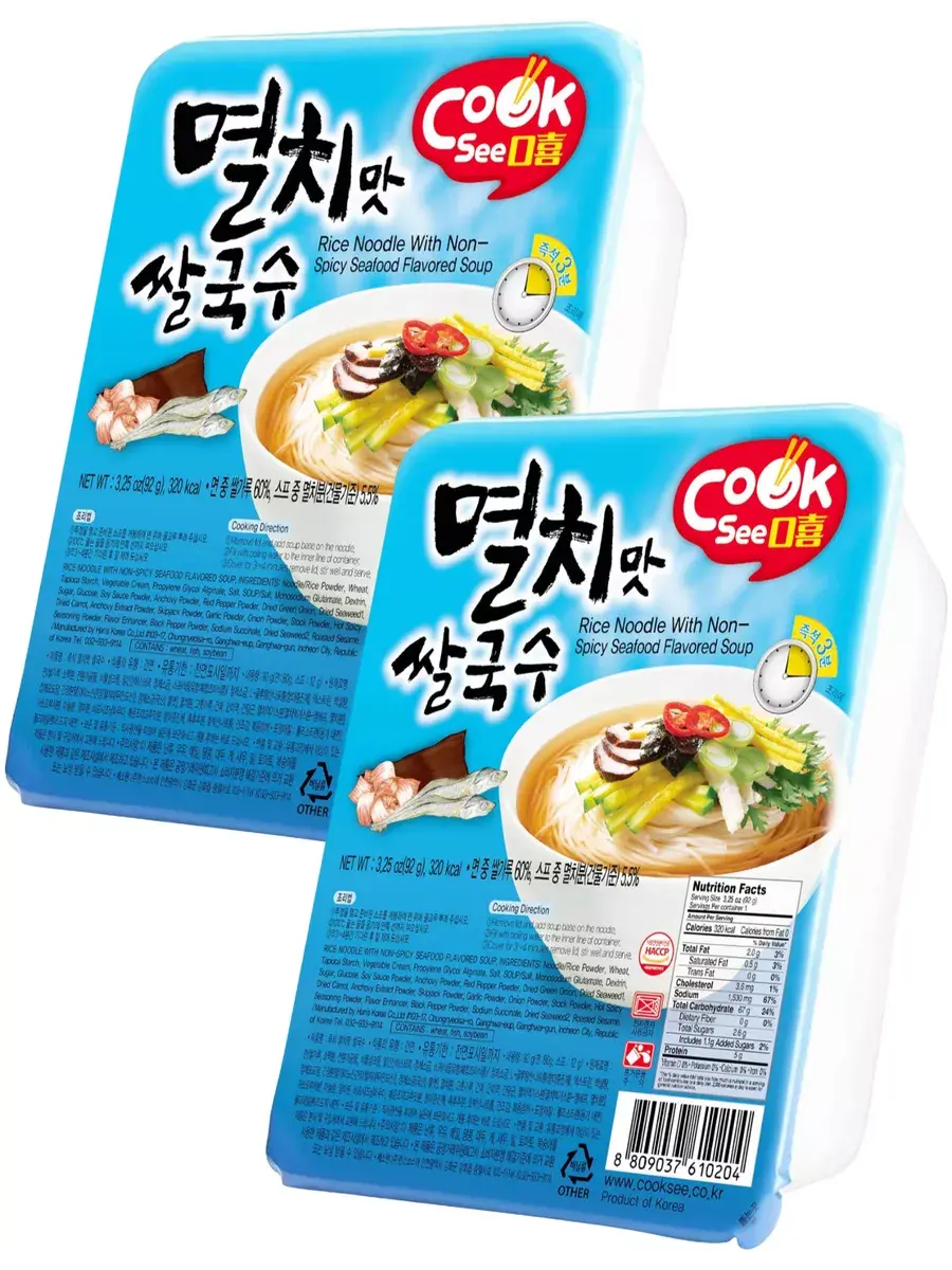 "Rice Noodle With non-spicy Seafood Flavor" - лапша быстрого приготовления из рисовой муки. Длинная и тонкая лапша с насыщенным бульоном из морепродуктов. Изготовленная из высококачественного риса, лапша обладает нежным вкусом морепродуктов и приятной текстурой. Популярный вкус в корейской кухне. Способ приготовления: Открыть крышку и высыпать приправу на вермишель. Залить кипятком до линии, указанной внутри упаковки. Закрыть крышкой на 3-4 минуты. Хорошо перемешать. В комплекте 2 упаковки по 92г.