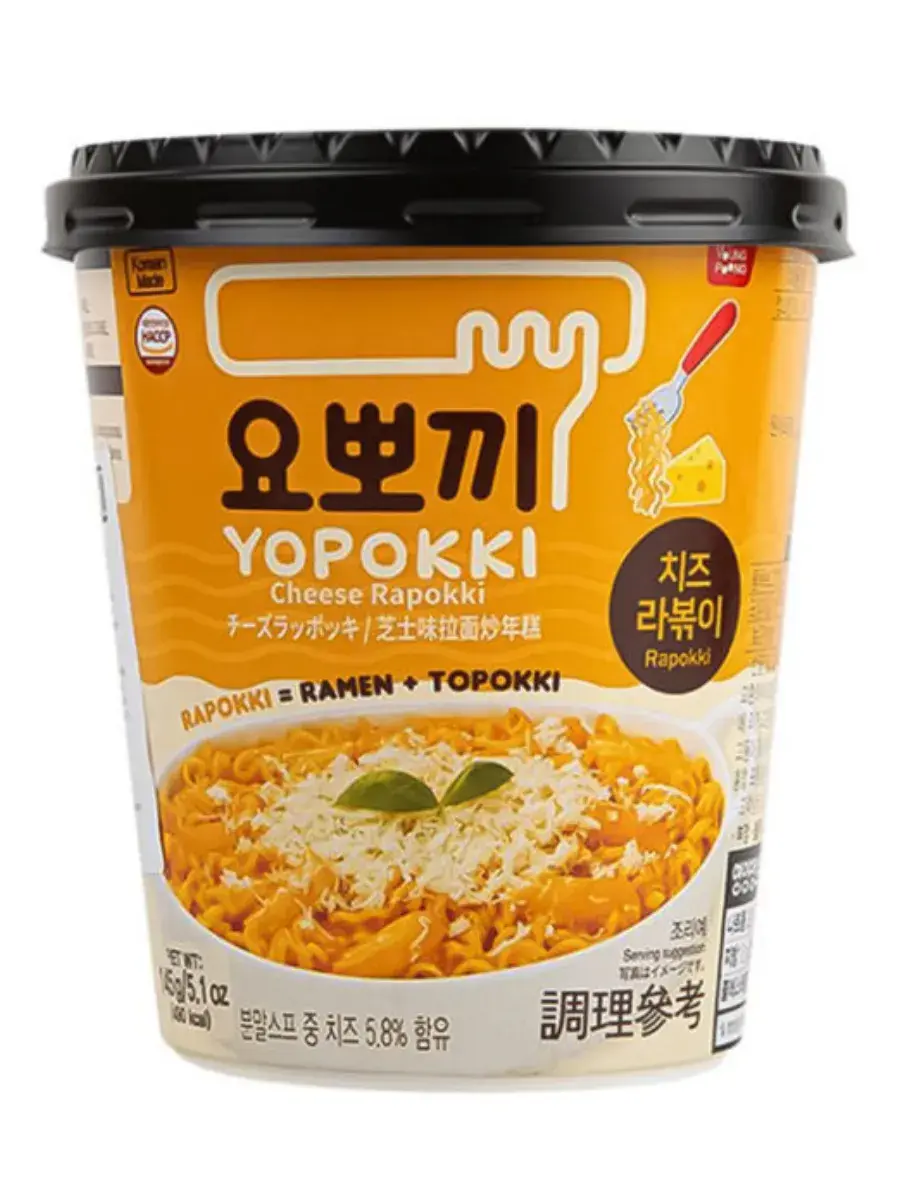 Встречайте новый хит из Кореи – рапокки, сытное и вкусное блюдо, которое по достоинству оценят любители быстрых, но полноценных перекусов. Необычное слово сформировано из названий двух ингредиентов блюда: лапши рамен и рисовых палочек токпокки. Суть блюда состоит в сочетании двух текстур: мягкой пшеничной лапши и упругих и плотных "брусочков" рисовых палочек. Отличается великолепным сырным вкусом и незабываемым ароматом. Это успех во всех отношениях: чтобы приготовить рапокки, нужно лишь добавить воды до указанной на стакане отметки и подогреть в микроволновой печи.
