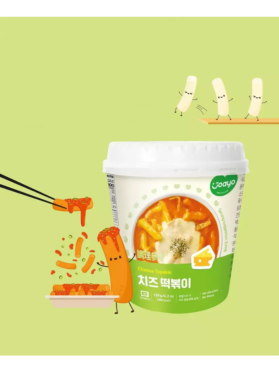 Токпокки - рисовые клецки, приготовленные в специальном соусе. Это прекрасная возможность без лишних хлопот приготовить оригинальное корейское блюдо за считанные минуты. Сырный соус с ярким сливочным вкусом прекрасно сочетается с клецками, отлично насыщает и наполняет энергией. Небольшие брусочки из рисовой муки обладают очень приятной жевательной текстурой, а ароматный соус с сыром чеддер придает ттокпокки очаровательную сливочную ноту. Смесь специй – лук, чеснок, куркума и красный перец - завершает выверенный ансамбль вкусов и добавляет клецкам нужную степень остроты. В комплекте 2 стакана по 120г.