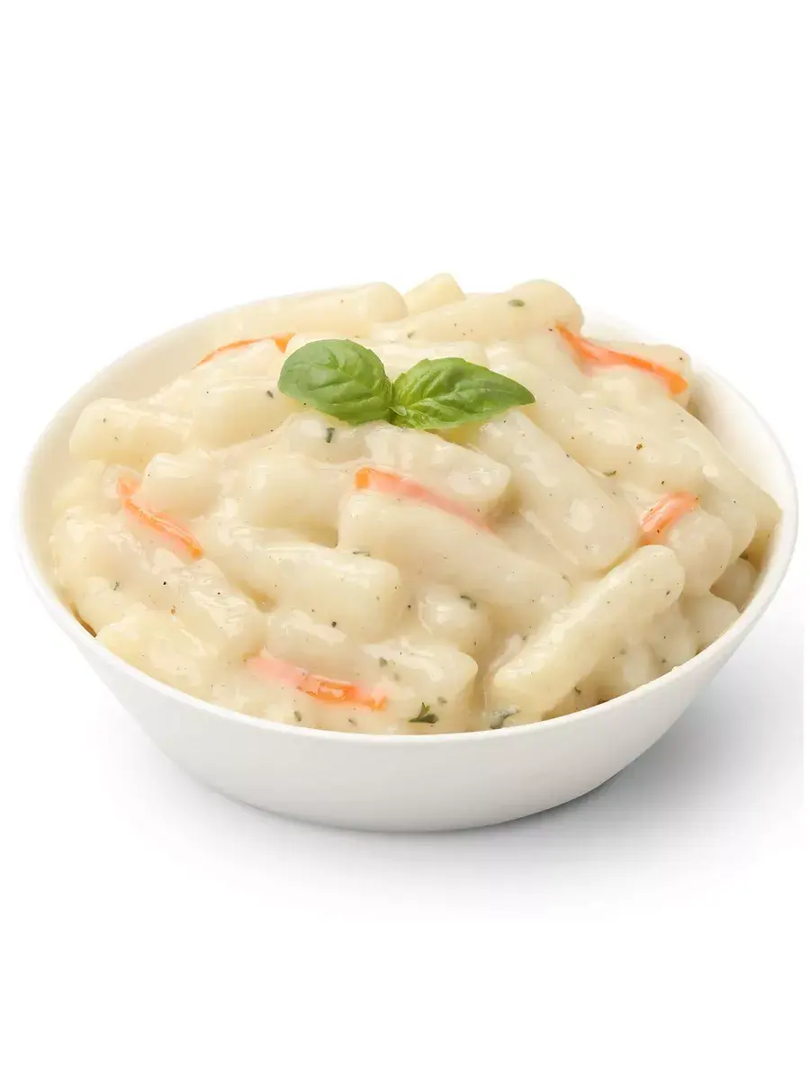 Мировые кухни и культуры мира тесно переплетены между собой. Попробовать микс итальянской и корейской кухни можно вместе с токпокки. Рисовые палочки из упругого теста вместе с густым сливочным соусом «Карбонара» порадует оригинальным рецептом. Мягкий, сладковатый вкус придется по душе любителям не острых блюд. Когда времени в обрез, то утолить быстро голод поможет стакан клецек. Приготовление в микроволновой печи займет всего 3 минуты. Сверху можно дополнительно посыпать тертым сыром. Сырный вкус горячих ттоков специально для тех, кто не привык к острой пище. Освободите от упаковки клецки, положите их прямо в стакан и засыпьте специями из второго пакета. Залейте водой до отметки внутри чашки. Поставьте в микроволновую печь на 3 минуты. В комплекте 2 стаканчика по 120г.