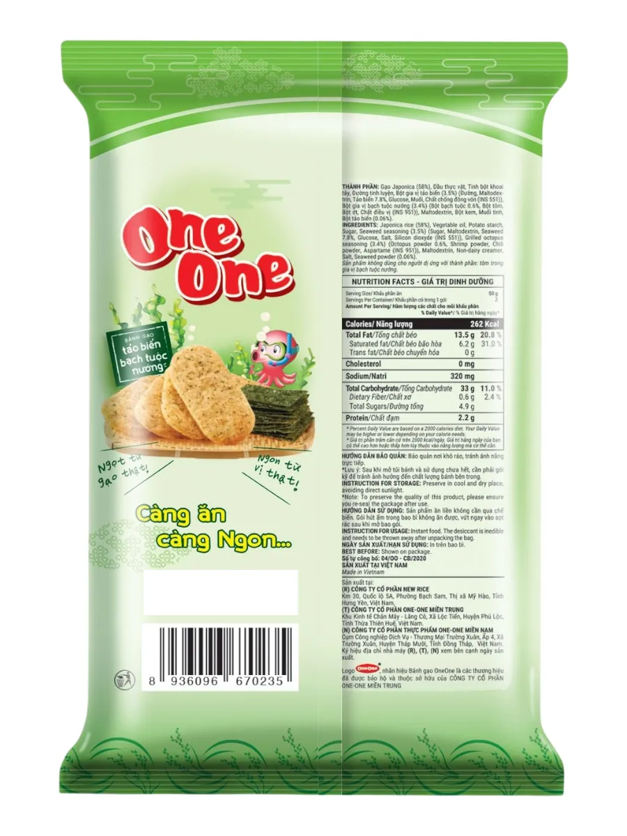Хруст, который уносит к морю. One One — это рисовые крекеры из отборного риса, запечённые до лёгкой, воздушной текстуры и дополненные ярким азиатским вкусом. Ключевая нота — морские водоросли и запечённый осьминог. Глубокий умами, приятная солоноватость и насыщенный морской аромат создают сбалансированный вкус без резкой остроты и перегруза. Это тот самый формат снека, который не надоедает: чем больше ешь — тем вкуснее ощущается каждый следующий кусочек. Крекеры легко хрустят, не крошатся и отлично подходят для перекуса в течение дня. Удобная компактная упаковка делает их идеальными для офиса, дороги или домашнего отдыха. Лёгкие по ощущениям, но выразительные по вкусу — удачная альтернатива классическим чипсам. One One — это гармония рисовой основы и морского акцента. Подойдут как самостоятельный снек, к чаю или в сочетании с соусами. Минимум лишнего. Максимум вкуса.