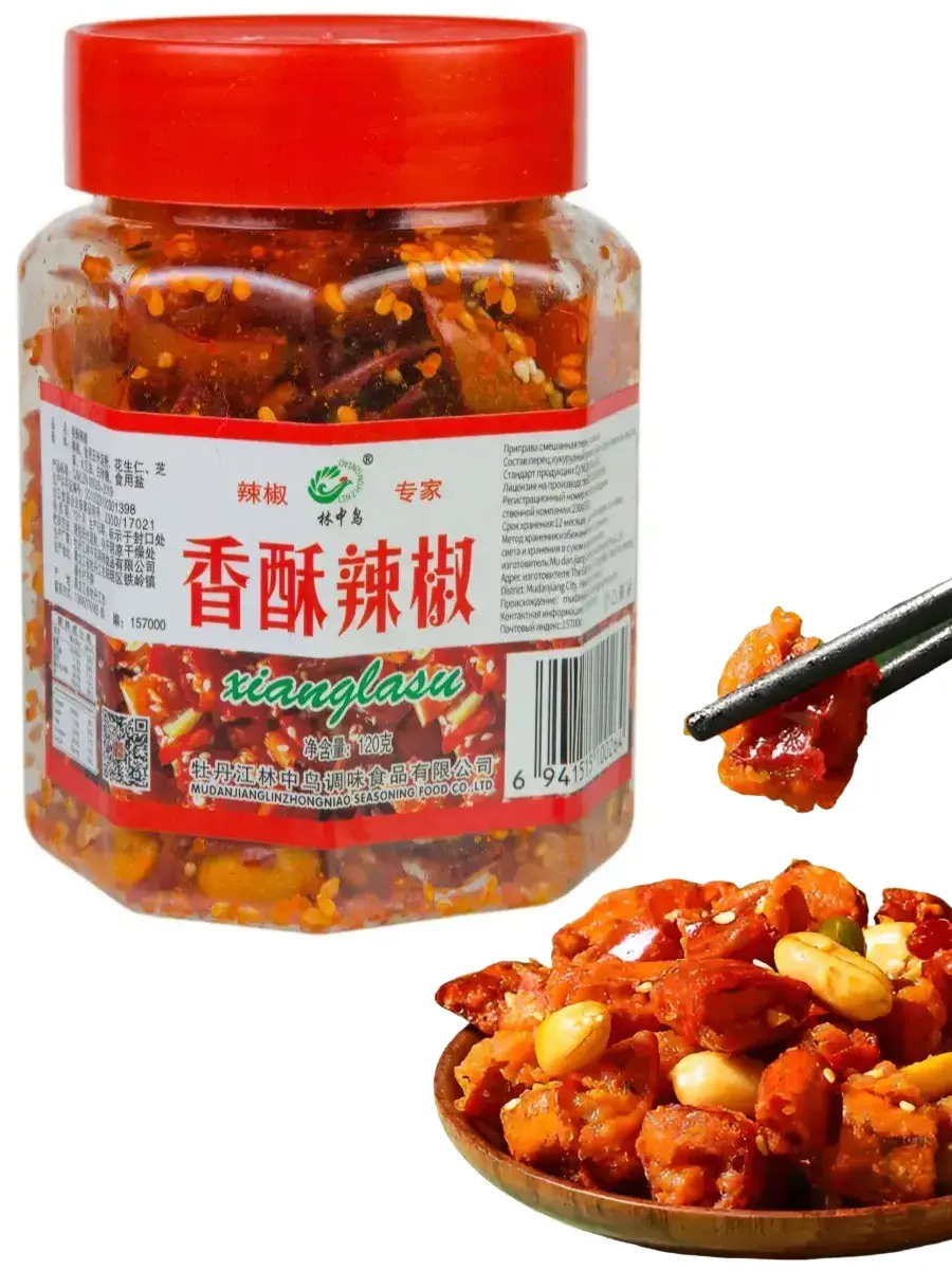 Сианласу — это уникальная приправа и закуска, которая соединяет в себе остроту перца, хруст арахиса и аромат кунжута. Эта пикантная смесь станет идеальным дополнением к вашим блюдам, придавая им насыщенный вкус и незабываемую текстуру. Перчик с арахисом и кунжутом может послужить отличной закуской. Этот китайский снек обладает слабо-острым вкусом. Украсьте им салаты и гарниры для создания азиатского акцента. Добавляйте в горячие блюда, супы или лапшу для придания пикантности и полноты вкуса. Сианласу — это выбор тех, кто ищет новые вкусовые ощущения!