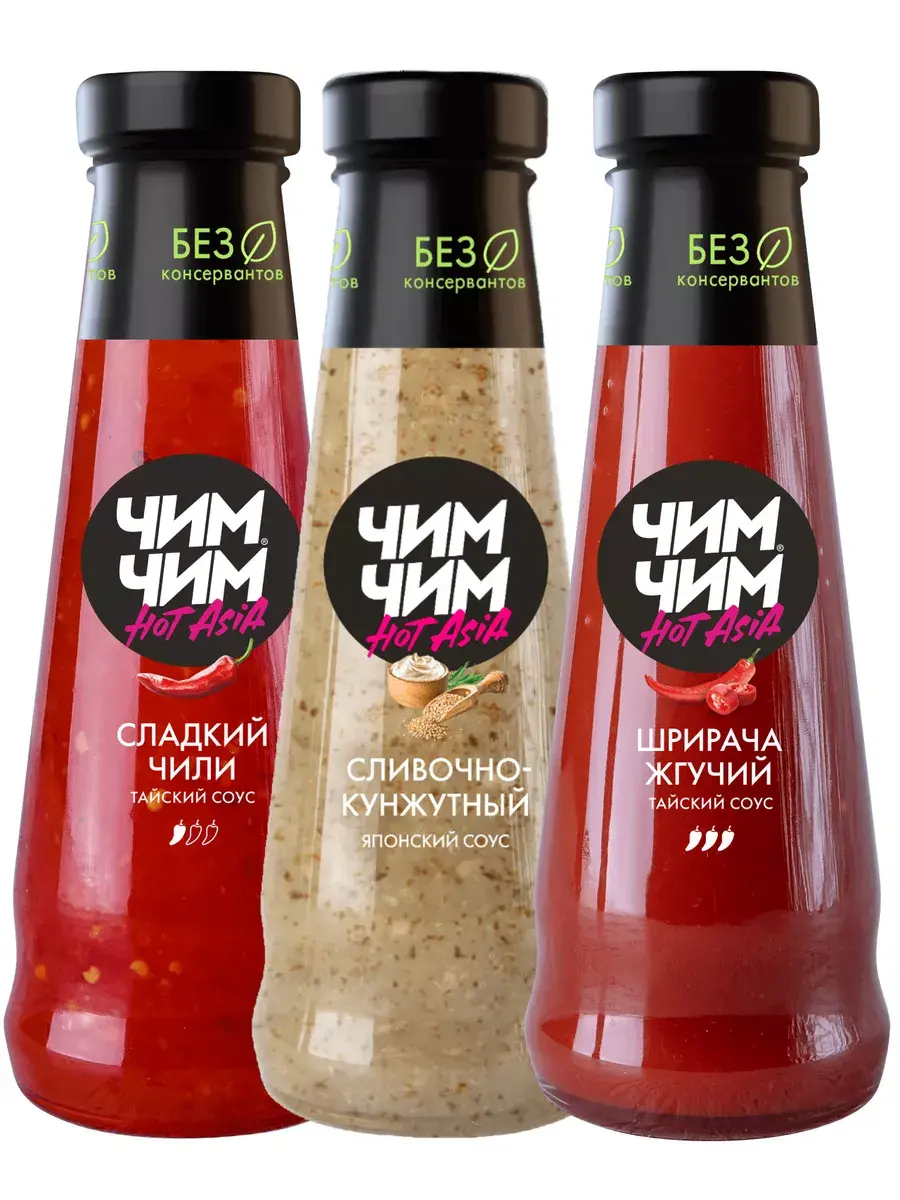 Сладкий чили - вкус традиционной тайской кухни. Жгучий перец чили, ароматный чеснок и сахарный сироп. Сладко-острый вкус идеально подходит к курице, креветкам и мясу. Сливочно-кунжутный - сочетание яркого вкуса обжаренного кунжута с солодово-ореховыми нотками соевого соуса, экстрактом грибов шиитаке и обволакивающими сливками. Соус с настоящим вкусом умами дополнит водоросли Чука, роллы, поке, блюда из рыбы и запечённых овощей. Шричача жгучий - пронзительно огненный острый вкус на основе пасты чили и чеснока. Подходит для приготовления пикантного мяса или рыбы. В наборе 3 бутылочки по 210 мл.