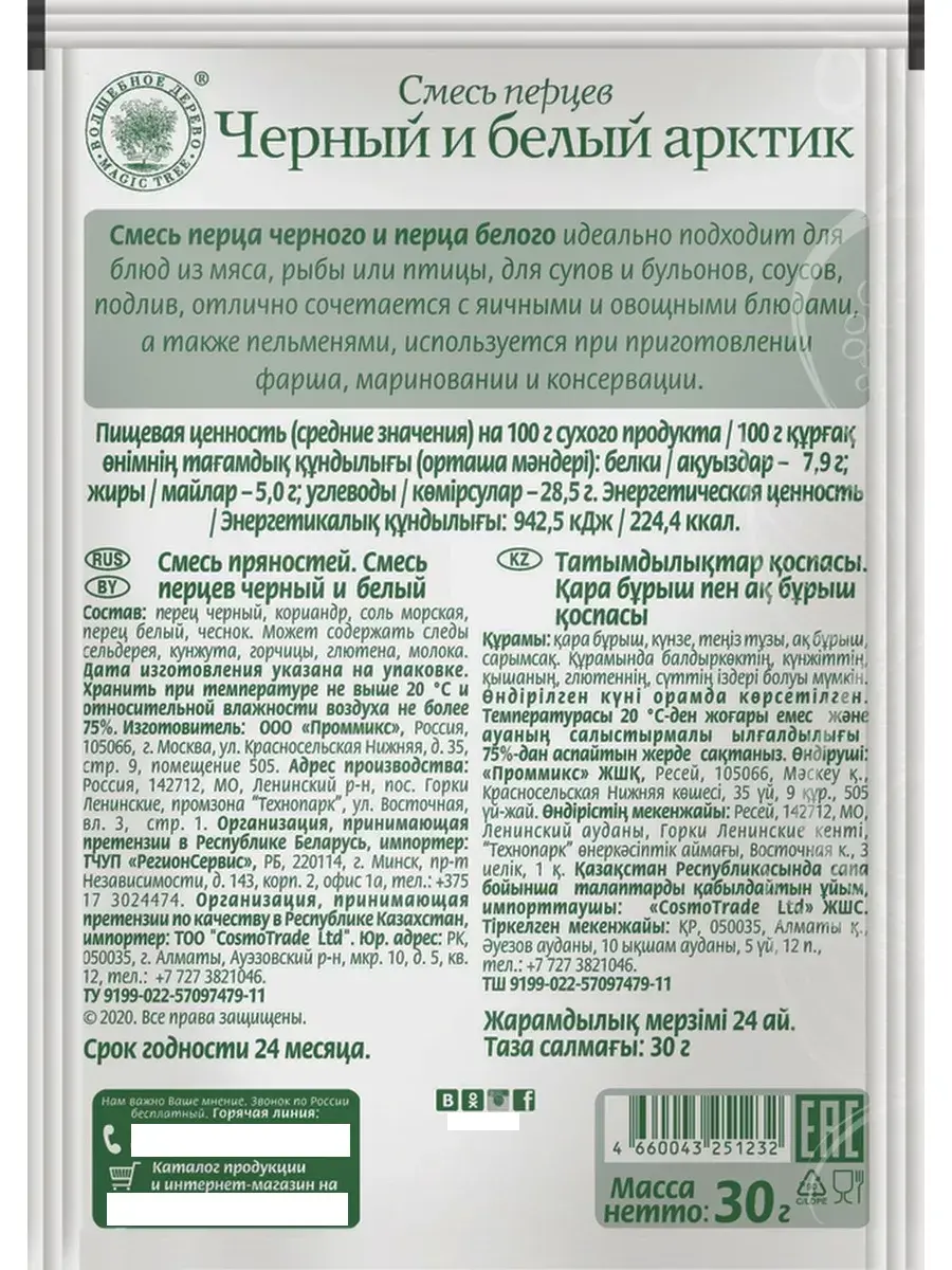 перец черный, кориандр, соль морская, перец белый, чеснок