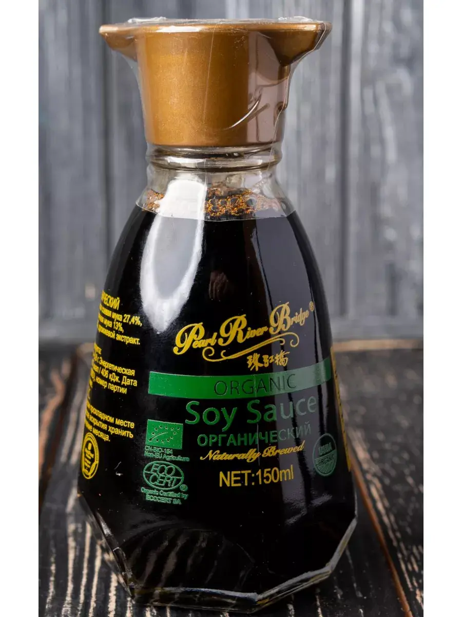 Натуральный органический соевый соус Pearl River Bridge изготовлен из экологически чистых продуктов, выращенных в условиях, максимально приближенных к естественным, по традиционной технологии с использованием натуральных соевых бобов высшего качества, пшеничной муки высшего сорта и сахара, имеет более долгую выдержку по сравнению с другими соевыми соусами, а также содержит патоку (жженый сахар), придающую ему более темный вид.