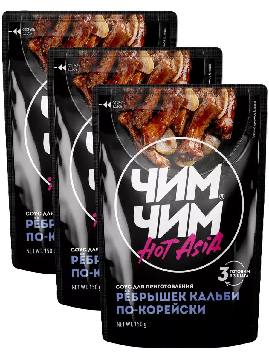 Кальби (Гальби) одно из самых известных блюд корейской кухни, готовиться из тонко нарезанных ломтиков говядины, предварительно замаринованных в соусе. В Корее есть ряд ресторанов и кафе специализирующихся на приготовлении Кальби, его жарят прямо у вас на столе. К говядине обычно подают множество закусок и листовых салатов и овощей. Вторым преимуществом - является простота приготовления. Кальби можно пожарить на сковороде дома и на гриле на природе. Можно смело сказать, что Кальби это своеобразное корейское барбекю. В комплекте 3 пачки по 150г.