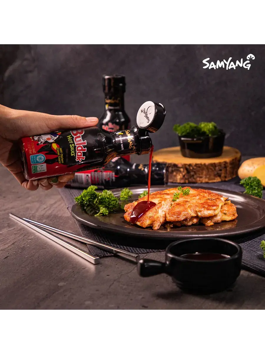 Супер острый корейский соус Samyang Buldak Hot Chicken - один из популярных корейских соусов, хорошо известный любителям азиатской кухни. Этот острый соус отличное решение для тех, кому нравятся жгучие азиатские блюда. С ним обычная лапша или рис превратятся в экзотический деликатес. Этот соус обладает великолепным острым вкусом, придающим блюду аутентичный корейский вкус и пикантность. Его используют для приготовления мяса, для обмакивая холодных и горячих блюд, для рыбы, морепродуктов и овощей. Используют в качестве маринада для мяса, добавляют при жарке и на завершающем этапе готовки. Также замечательно сочетается с настоящими корейскими блюдами, такими как пибимпап и токпокки. Используется как готовый продукт, а также при приготовлении блюд из риса, овощей, мяса, рыбы. Подходит как для домашнего, так и для профессионального использования.