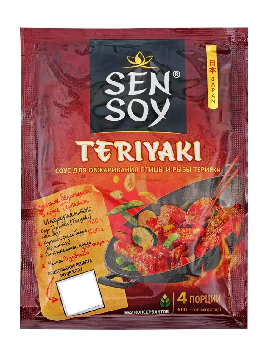 Японский соус-приправа Teriyaki (Терияки) готовится на основе соевого соуса с добавлением ананаса, свежего имбиря, чеснока и других пряностей. Мясо, морепродукты, овощи и даже фрукты маринуются в этом соусе, затем обжариваются на решетках и подаются к столу в этом же соусе.