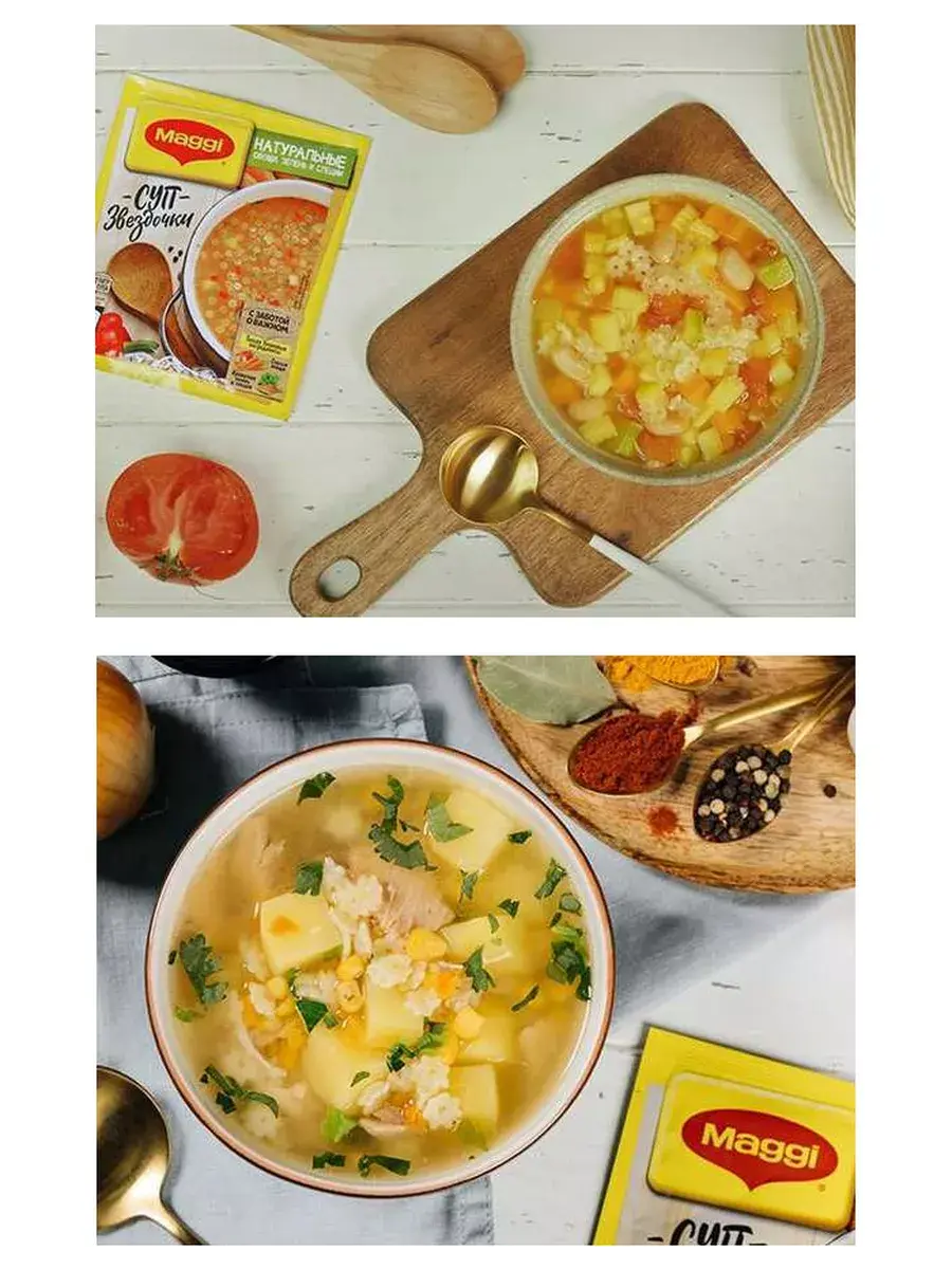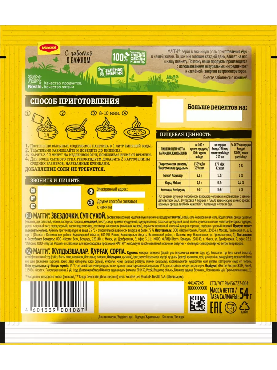 В его состав входят только знакомые ингредиенты: лук, морковь, паприка, вермишель высшего сорта, йодированная соль, травы и специи.