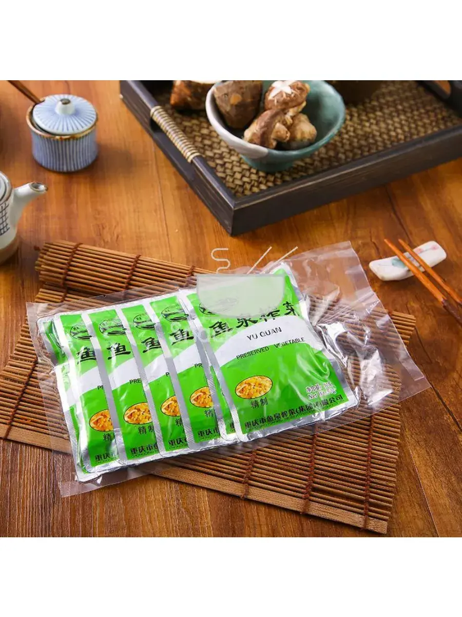 Сычуаньская капуста или китайская корнеплодная горчица — продукт, который делается из сочных наростов на стеблях горчицы. Капусту называют сычуаньской, так как китайская провинция Сычуань — один из основных регионов ее выращивания. Сычуаньская капуста имеет кисло-пряный и одновременно очень нежный вкус и аромат. Великолепная, готовая к употреблению ароматная и хрустящая закуска. Данный продукт мы можем использовать в разных вариантах. Добавляйте при обжарке продуктов, в супы, фарш или в виде хрустящего топинга к лапше. В комплекте 5 пачек по 50г.
