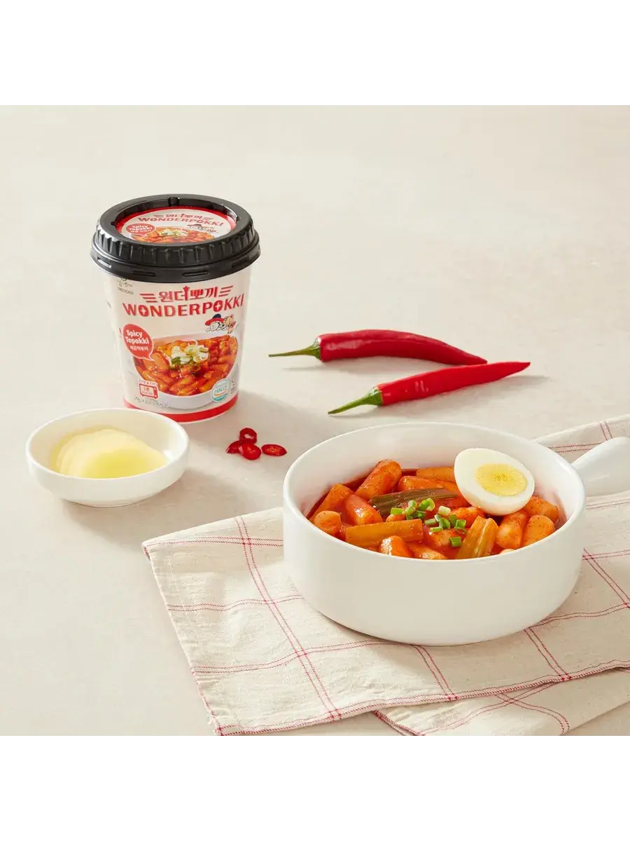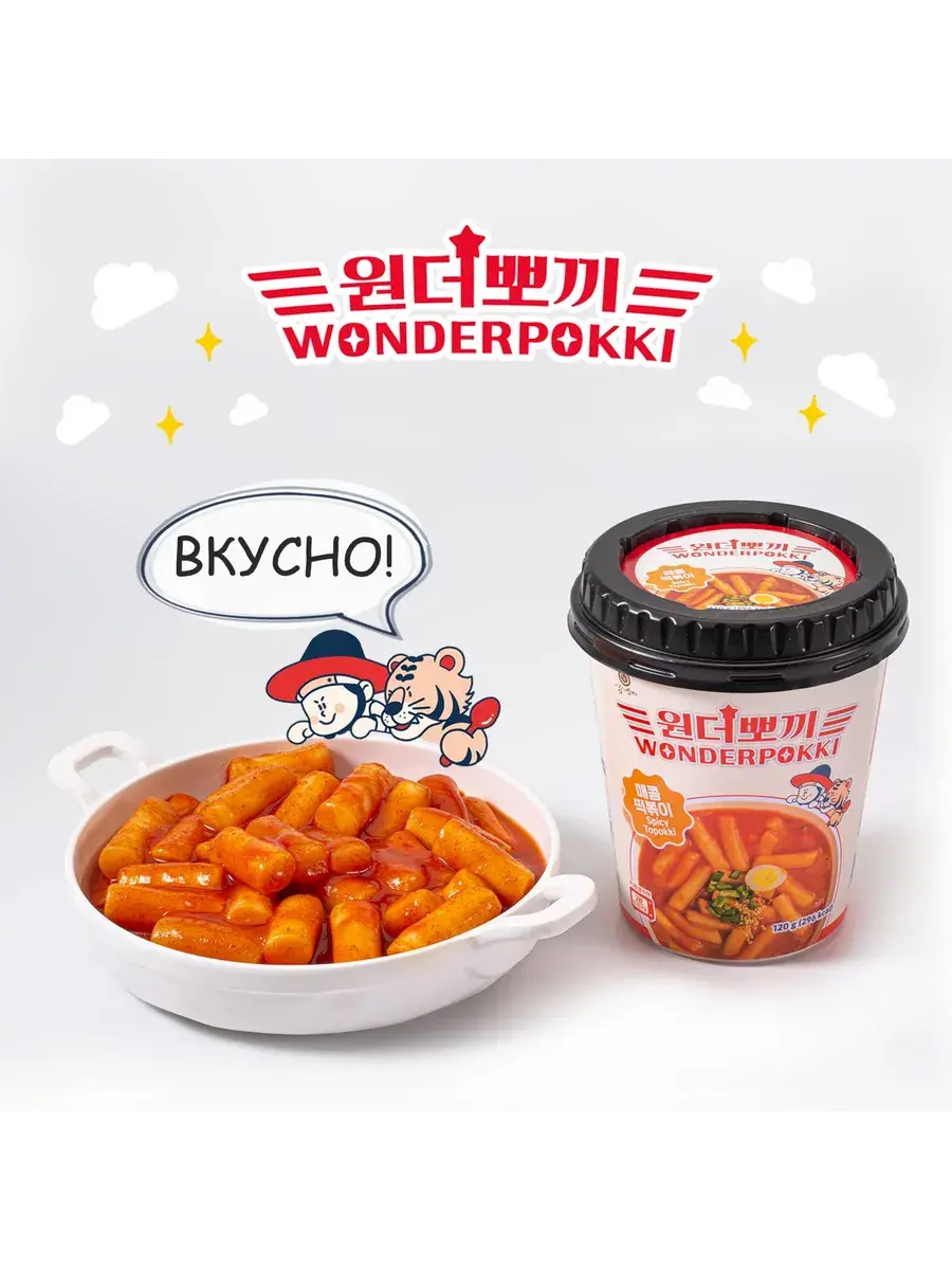Хочешь почувствовать себя на шумной улочке Сеула, где повсюду аромат острого соуса, жареного чеснока и свежих рисовых палочек? Встречай настоящие корейские ттокпокки в удобной чашке быстрого приготовления — идеально для тех, кто живёт в ритме большого города и не готов отказываться от настоящего вкуса. Wonderpokki — это идеально приготовленные рисовые палочки (тток) с уникальной, слегка упругой и жевательной текстурой. Ни мягкие, ни резиновые — именно такие, какими их подают в настоящих корейских забегаловках. С каждым укусом ты ощущаешь, как они мягко пружинят под зубами, впитывая в себя пряный, густой соус. А этот соус — настоящий герой блюда. Острота, которая разогревает изнутри, лёгкая сладость, уравновешивающая жар, глубина вкуса, в которую хочется погрузиться.