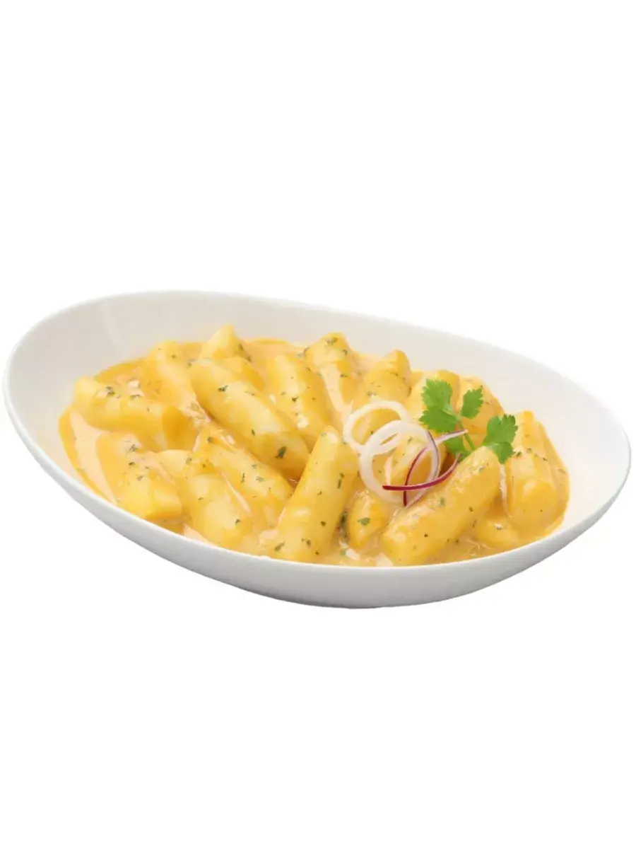 Токпокки – это небольшие брусочки из рисовой муки. Преимущество токпокки – высокая питательность и нейтральный вкус, который обогащается благодаря соусам и подливам. Нежная текстура рисовых клёцок понравится и детям, и взрослым, а чтобы приготовить полноценный обед, потребуется всего несколько минут: