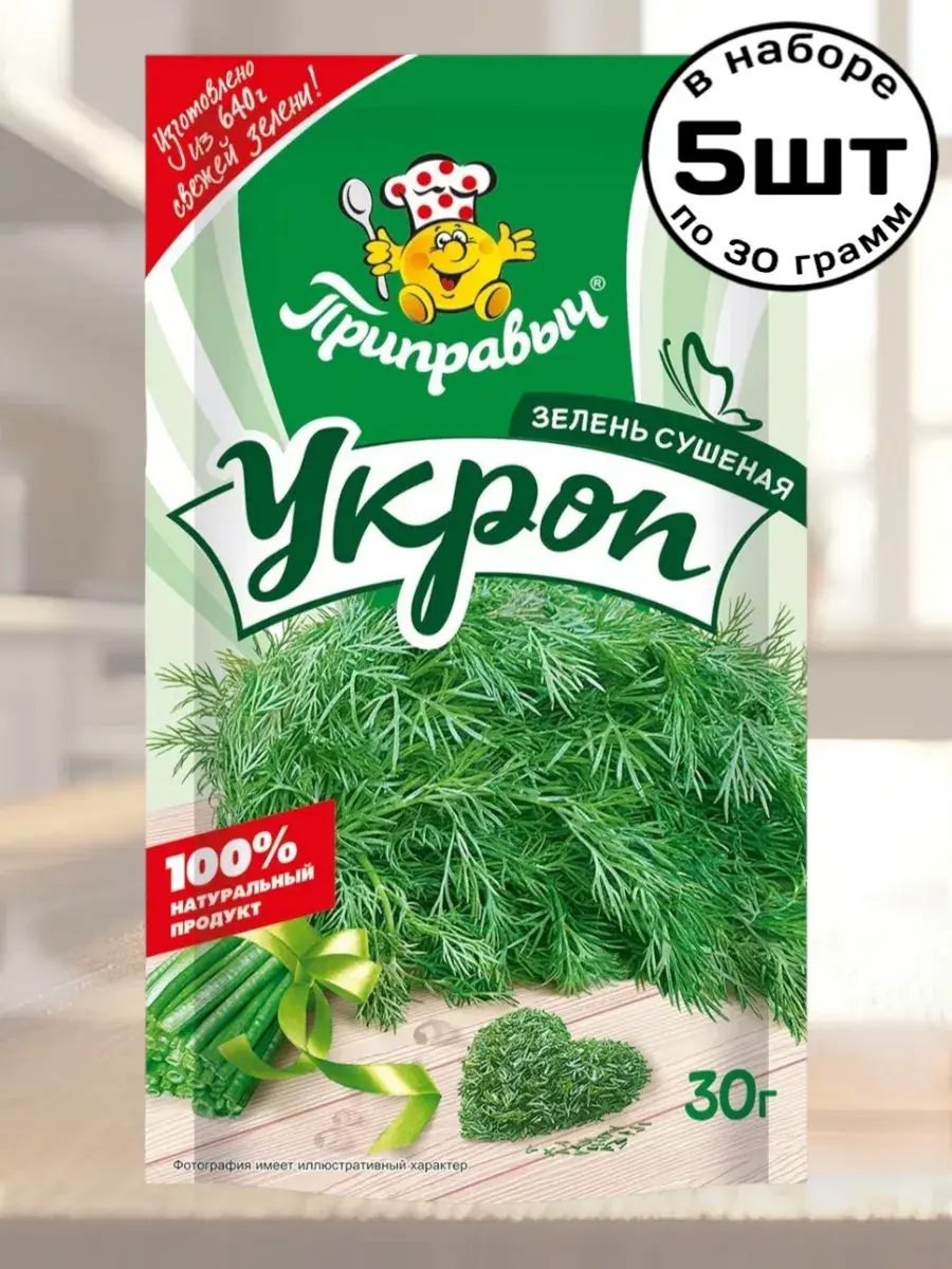Укроп используется в кухнях многих стран и является одной из самых распространенных пряных трав на столе! Он обладает приятным характерным вкусом и ароматом, вызывающим аппетит. Сушеный укроп сохраняет полезные свойства и вкус свежей зелени. Укропом в пакетике легко и удобно пользоваться, потому что он всегда под рукой! Укроп обогатит вкус супов, придаст тонкий ароматический вкус мясным блюдам из свинины, говядины, баранины, курицы, телятины, утки, индейки, дичи. Подчеркнет вкус рыбных, овощных и грибных блюд. Также добавляется в заливные блюда и холодцы. Добавление укропа в домашние заготовки (соления и маринования овощей, грибов) придаст не только приятный вкус, но и защитит продукт от плесени благодаря содержанию в укропе фитонцидов.