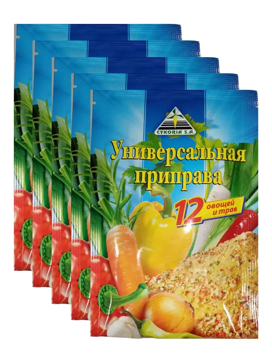 Ищете способ придать вашим блюдам неповторимый вкус и аромат? Универсальная приправа 12 овощей и трав от Cykoria S.A. — это идеальное решение для любой кухни! Этот уникальный продукт сочетает в себе богатство вкусов и ароматов 12 тщательно отобранных овощей и трав, создавая настоящий кулинарный шедевр в каждом блюде. Сушеные овощи: морковь, корень пастернака, корень сельдерея, паприка, лук, лук-порей, чеснок, помидор, цикорий. Эти ингредиенты придают смеси насыщенный и разнообразный вкус. Сушеная зелень: петрушка, сельдерей, укроп, базилик, любисток. Эти травы добавляют свежий аромат и полезные свойства. Идеально подходит для супов, соусов, мясных и овощных блюд. В комплекте 5 пакетиков по 70г.