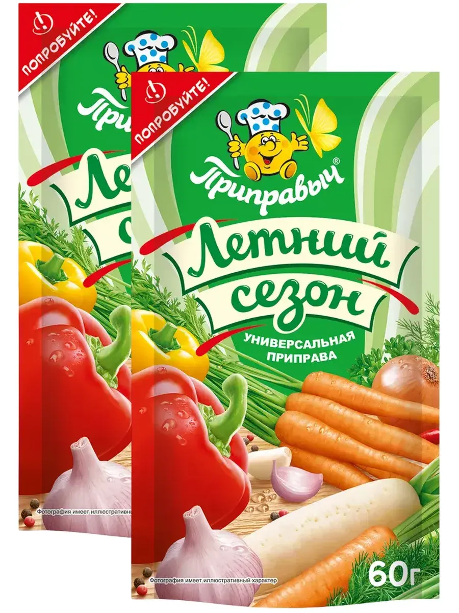 Лето радует нас щедрым урожаем согретых на солнце овощей и зелени. В приправе «Летний сезон» собран яркий букет овощей и зелени, дарящий частицу летнего настроения. Эта приправа универсальна и может применяться в любых блюдах по вашему желанию: в супах, в мясных и рыбных блюдах, различных гарнирах и многих других. Овощи и зелень, входящие в состав приправы, обогатят вкус и подарят яркий летний вид вашим блюдам! Приправу следует добавлять за 15 минут до готовности блюда! В комплекте 2 штуки по 60г.