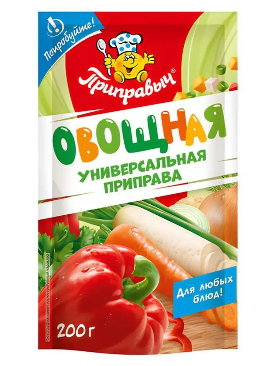 Приправа Универсальная Овощная - это специально подобранная смесь овощей и пряных трав. Для вас эти овощи и травы специально нарезаны, высушены и упакованы. Приправа станет прекрасным украшением и вкусовым дополнением ваших блюд. Вам останется только высыпать ее из пакетика и палитра вкусов лета окажется у вас на столе, даря блюдам яркие цвета и ароматы лета. Приправа прекрасно дополнит блюда из мяса, рыбы, овощей, также ее можно добавить в соусы и супы. Овощи и зелень, входящие в состав приправы, придадут вашему блюду свежий летний вид! Приправу следует добавлять за 5-10 мин. до готовности блюда. Внимание! Учитывайте, что приправа уже содержит соль.