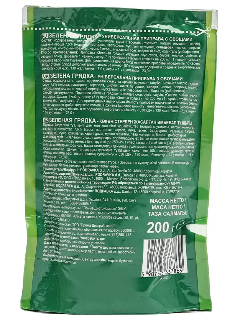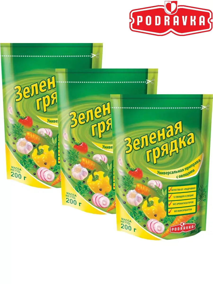 Универсальная приправа с овощами Podravka "Зеленая грядка" содержит комбинацию нескольких видов специй и сушеных овощей, благодаря чему подчеркивает аромат главных компонентов блюда и делает его вкус богаче. Приправа улучшает вкус супов, соусов, мясных, рыбных и овощных блюд. Добавьте 1 чайную ложку (3 г) приправы на 250 мл (1 порция) блюда в процессе варки или тушения. Для приготовления других блюд количество приправы определяется по своему вкусу. Готовые блюда дополнительно солить не нужно. В комплекте 3 штуки по 200г.
