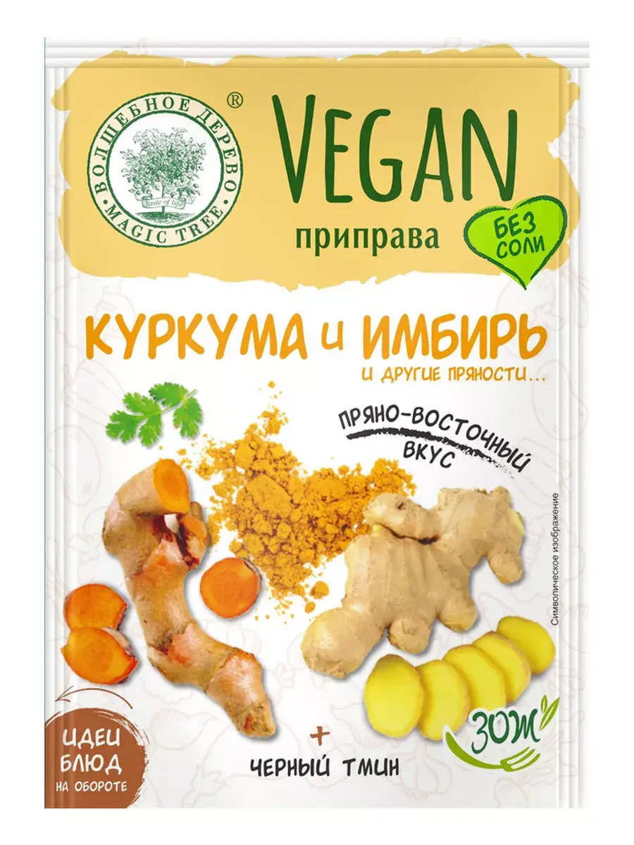 Серия «Vegan» специально разработана для веганов или тех, кто ведет здоровый образ жизни. Хотите получить пряно-восточное вкус вашего блюда? Смело пробуйте приправу «Куркума и Имбирь». В одном пакетике все, что необходимо: перец душистый, имбирь, пажитник, куркума и еще много ценных ингредиентов. Приправа без соли! Не бойтесь импровизировать на кухне! Приправа подходит для разных вегетарианских блюд: вегетарианских супов, индийских блюд, блюд из овощей, круп (кускуса, риса, маша и т. д.), вегетарианских пирогов. В комплекте 4 пакетика по 22г.