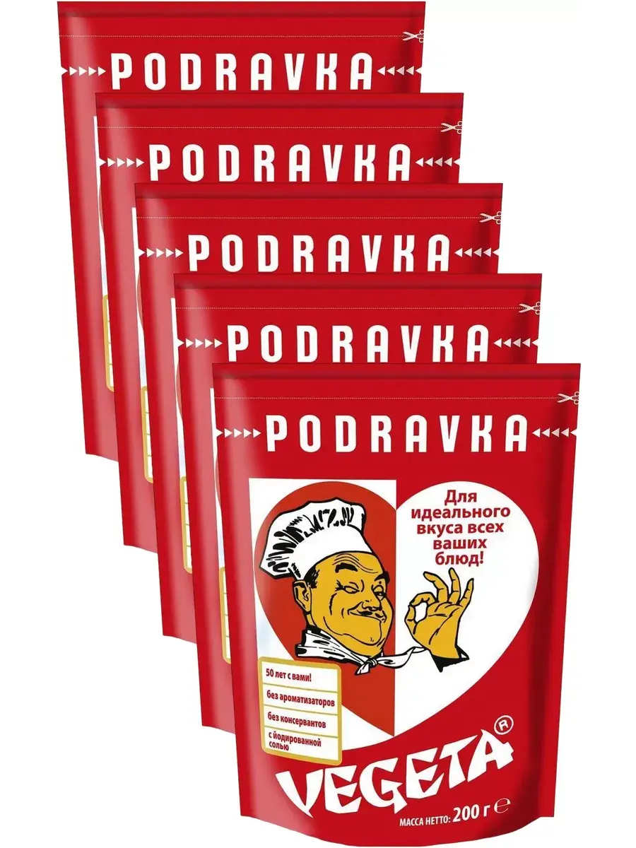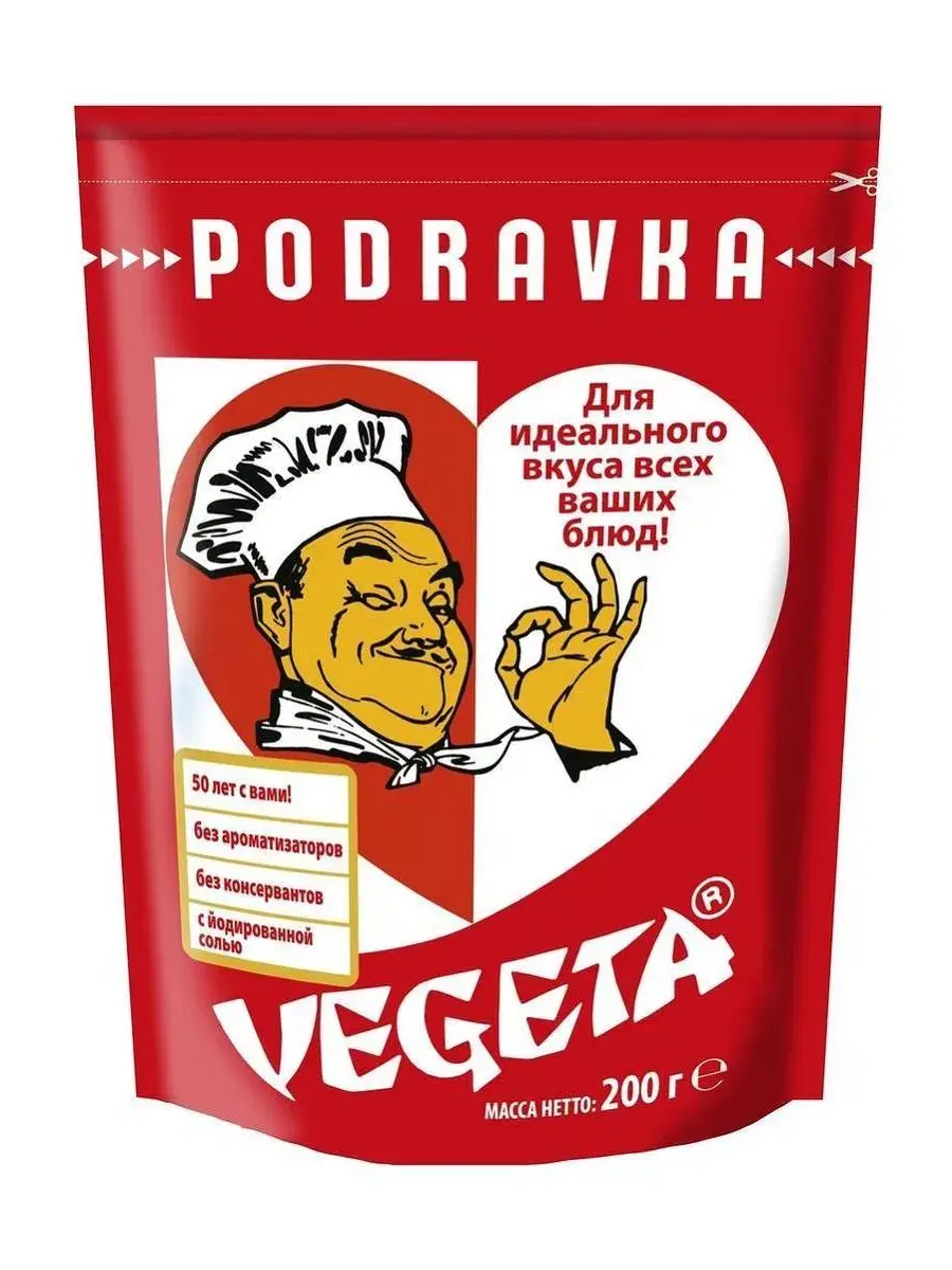 Приправа Vegeta – это приправа для первых блюд и гарниров, приготовленная путем соединения овощей и специй. Готовится из натуральных продуктов, выращенных без применения химических обработок. Такой подход позволил максимально сохранить в ней все полезные вещества, подаренные природой. Продукт настолько универсальный, что трудно назвать блюдо, для которого он не подходит. С каким бы продуктом вы не решили его соединить, результат будет однозначно высоким. Будь это суп, гарнир, закуска или мясо все без исключения заиграет новыми красками вкуса, наполнив ваш дом чудесным ароматом. Подходит для вареных, тушеных или жареных блюд (супов, соусов, риса, овощей, мяса, рыбы). Способ употребления: добавьте приправу Вегета из расчета 3 г приправы на 250 мл блюда за 5 минут до готовности. Или добавьте приправу по вкусу к мясу или рыбе до запекания. В комплекте 5 пакетиков по 200г.
