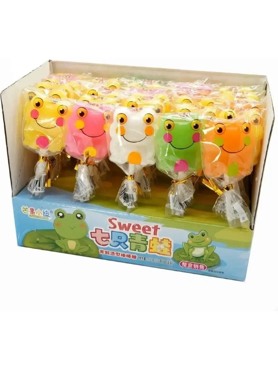 Леденцы на палочке с фруктовым вкусом в форме лягушат! Яркие цвета леденцов и забавные мордочки лягушат не оставят никого равнодушным. Необычная сладость с легкостью украсит любой детский праздник или дружескую встречу, а также поднимет настроение во время обычного перекуса. Лягушат любят все, а съесть такую необычную леденцовую карамель будет еще интереснее и увлекательнее. Яркие цвета и сочный вкус заставят улыбнуться, а удобная палочка облегчит процесс трапезы. Любители азиатских сладостей оценят! В наборе 30 индивидуальных упаковок.