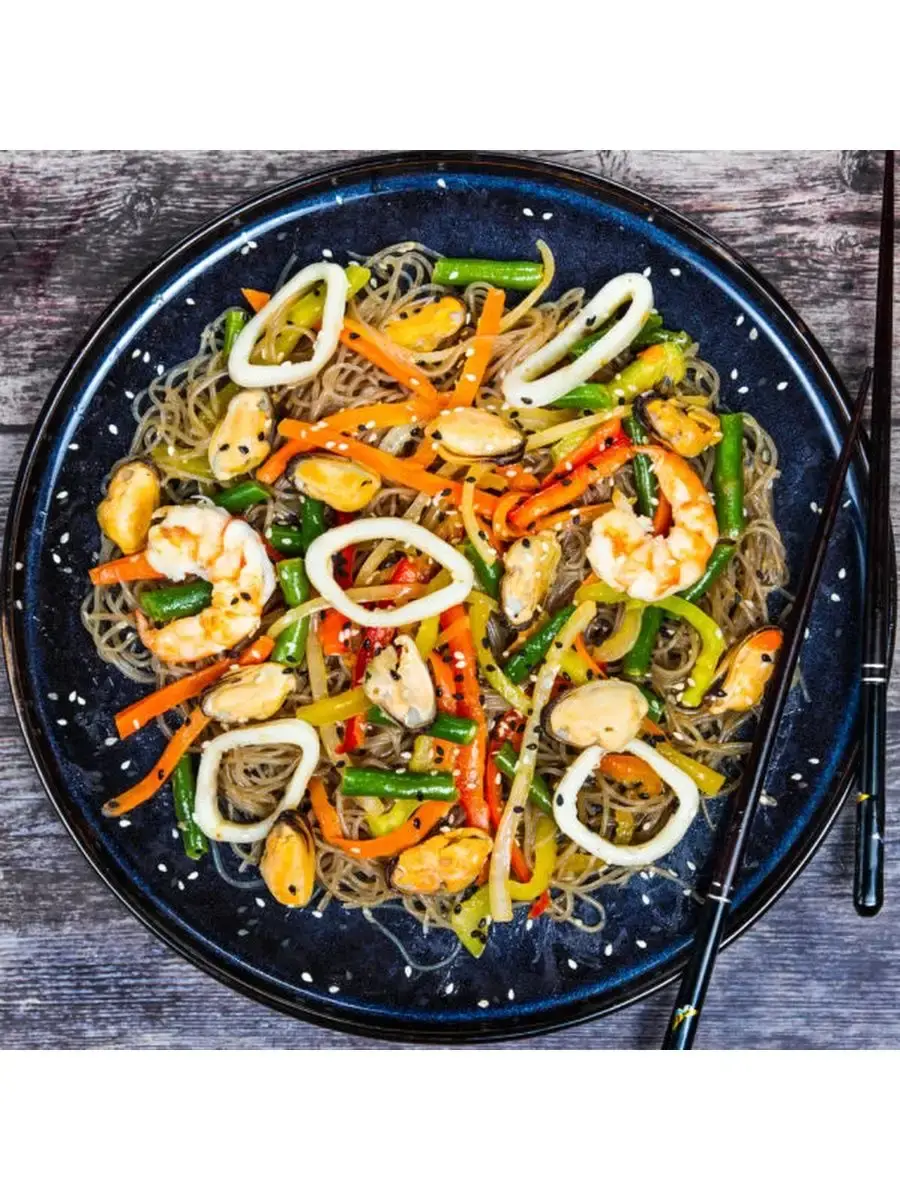 Фунчоза (стеклянная лапша) – традиционное блюдо азиатской кухни. Отварной ингредиент подают с различным гарниром из овощей, мяса, рыбы или морепродуктов. Блюдо употребляют как в холодном, так и горячем виде. Вьетнамская фунчоза представляет собой прозрачную соломку, толщиной 2 мм. Имеет нейтральный вкус, что помогает ей прекрасно сочетаться с любыми продуктами. При этом лапша не теряется ни в одном блюде. Ее можно есть и отдельно, только приправив соусом, и добавлять к чему угодно – от холодных закусок и салатов до десертов.