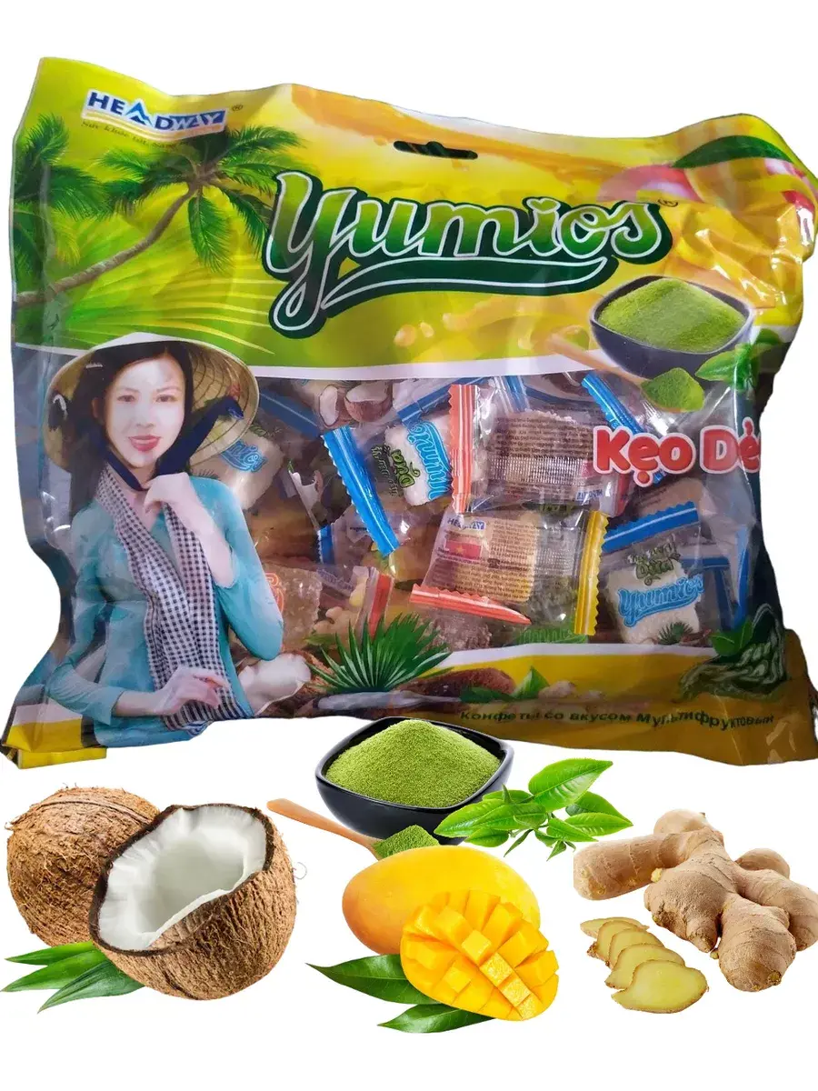 Прямиком из Вьетнама – желейные кубики в кокосовой стружке. Откройте для себя магию экзотических вкусов, собранных в одном изысканном лакомстве! Погрузитесь в тропический рай с насыщенным вкусом свежего кокоса, который перенесёт вас на пляжи Вьетнама, где море и пальмы создают идеальную атмосферу для наслаждения. Сладкий, сочный и освежающий вкус манго мгновенно дарит радость и энергию. Каждая конфета – это кусочек летнего солнца, спрятанный в нежном желейном кубике. Почувствуйте тепло и аромат имбиря, который дарит лёгкую пикантность и согревающее ощущение. Эта конфета – идеальный выбор для тех, кто ищет что-то необычное и запоминающееся. Нежная горечь порошка матча в сочетании с кокосовой стружкой создаёт гармонию вкусов, пробуждающую чувства и ум. Эти конфеты не только восхитительны на вкус, но и прекрасно смотрятся – идеальный подарок для друзей и близких или просто для того, чтобы побаловать себя.