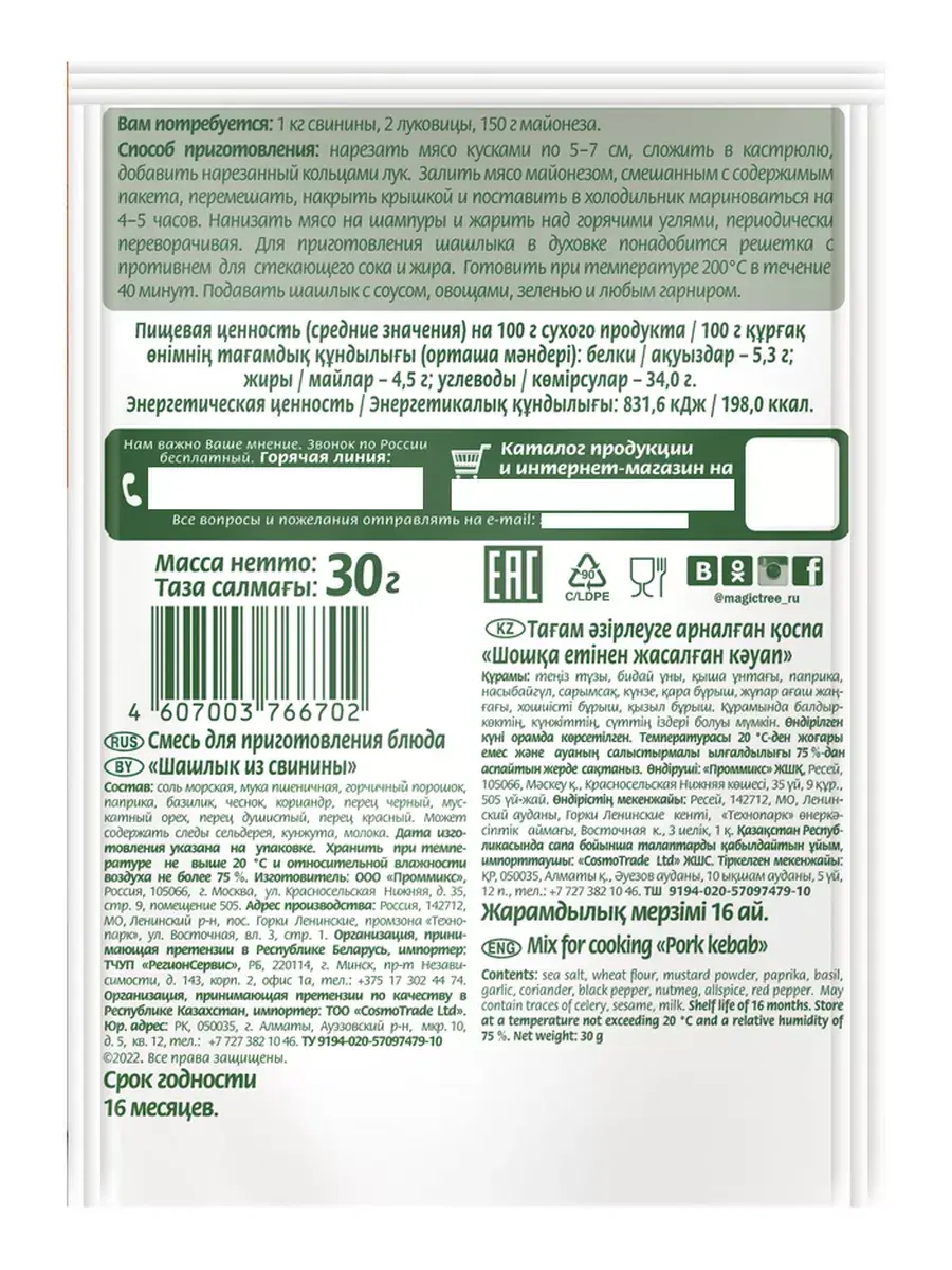 Для шашлыка из Свинины: соль морская, мука пшеничная,