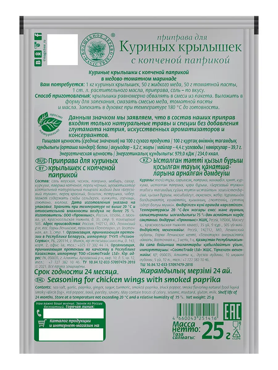 Для Куриных Крылышек: соль морская, чеснок, паприка, имбирь,