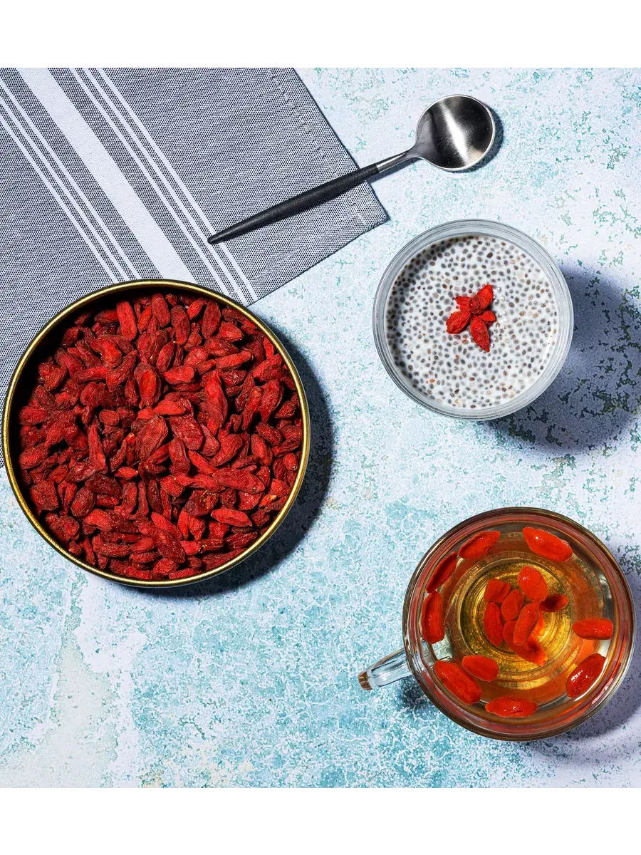 Ягоды годжи – суперфуд, в составе которого содержится 21 микроэлемент и значительное количество витаминов: C, A и E. Ягоды годжи богаты аскорбиновой кислотой, ее больше чем в свежих апельсинах, бета-каротина больше, чем в моркови, железа больше, чем в отбивной или шпинате. Число антиоксидантов в 10 раз выше показателей красного винограда. Регулярный прием годжи повышает иммунитет, снижению уровня холестерина и сахара в крови, улучшает зрение, способствует предотвращению заболеваний печени. Таким образом, чудо-ягоды оздоравливают организм и продлевают молодость, а при правильном применении помогают сбросить вес. Самый быстрый и простой способ употребления — есть сухие ягоды, предварительно вымыв их в теплой воде. Диетологи рекомендуют замачивать годжи на ночь, а утром выпивать образовавшийся настой, в который экстрагировалась большая часть ценнейших витаминов и микроэлементов плодов. Можно съедать и сами размякшие ягоды. Рекомендуемая доза в день — до 15-20 граммов.