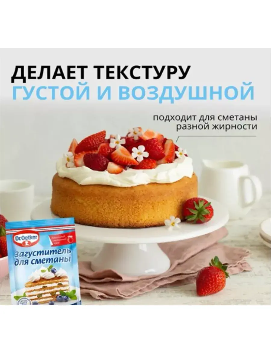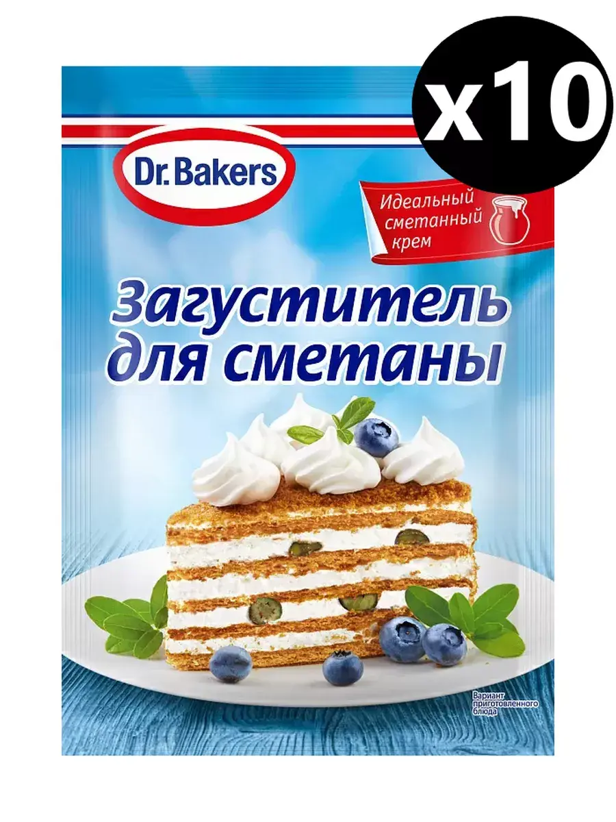 Загуститель для сметаны Dr.Bakers предназначен для получения крема идеальной консистенции. В составе загустителя содержится небольшое количество сахарной пудры, поэтому он обладает сладковатым вкусом. Не имеет запаха. С применением одной упаковки Dr.Bakers, всего за пару минут можно сделать из 0,5л сметаны воздушный и плотный мусс. Рекомендуется использовать для кисломолочных продуктов различной жирности. В наборе 10 индивидуальных пакетиков по 16г.