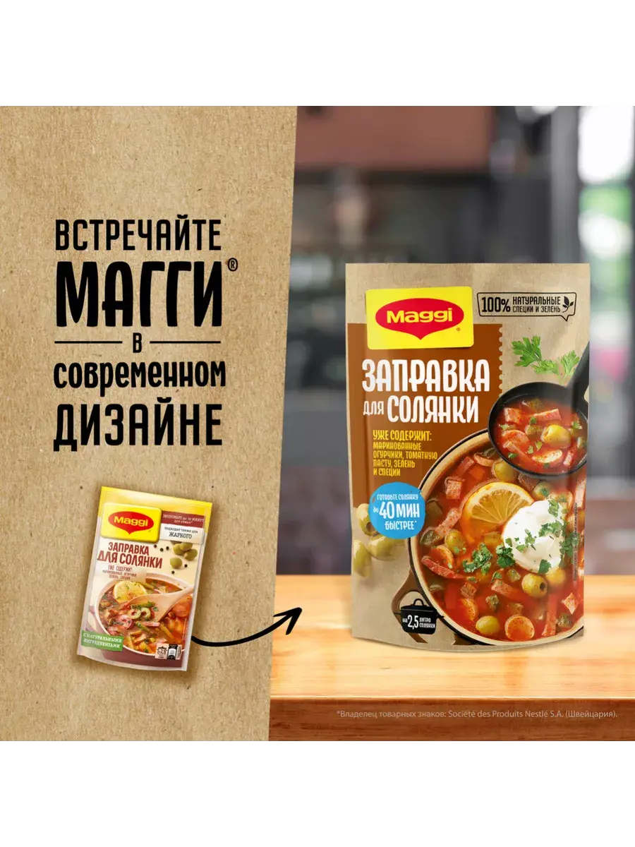 А с MAGGI Заправкой для солянки вы сможете чаще радовать семью любимым вариантом супа без лишних усилий.