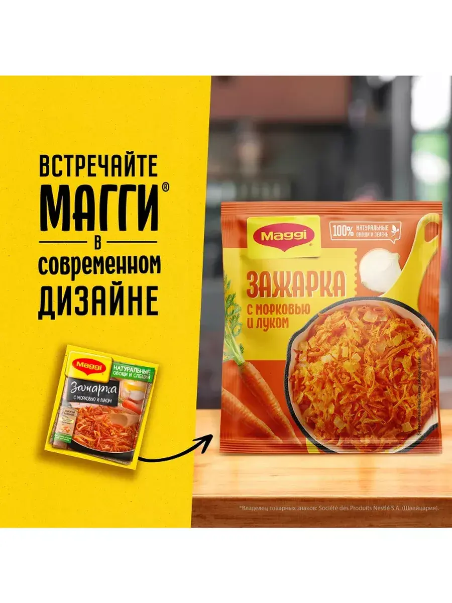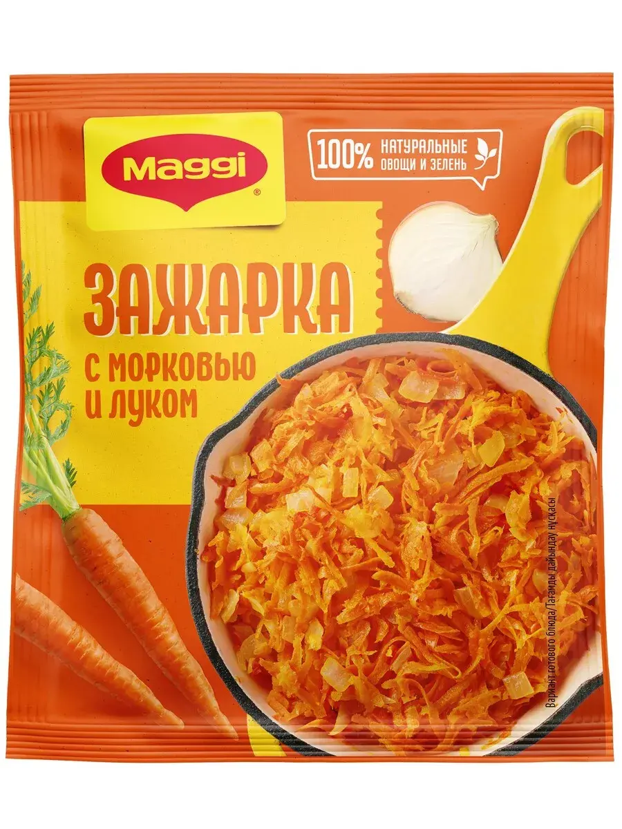MAGGI Зажарка — это классическая сухая смесь из лука, моркови и специй, с которой вы можете готовить, как первые, так и вторые блюда.