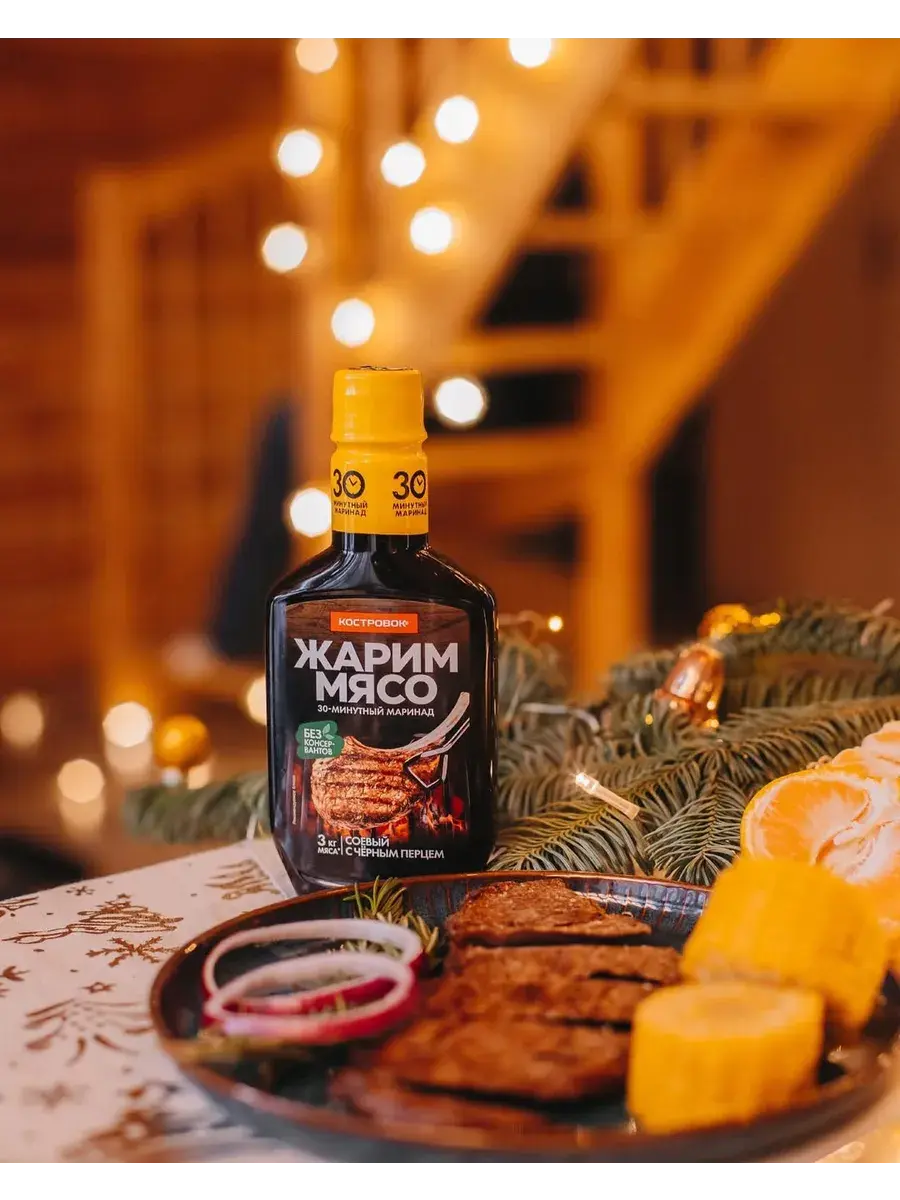 Соевый маринад с чёрным перцем предназначен для приготовления блюд из мяса и птицы. Он обладает тщательно сбалансированным составом, в который входят соевые бобы, репчатый лук, патока и другие ингредиенты. Маринад помогает придать готовым блюдам выразительный аромат и насыщенный вкус, а также сделать их более нежным. Продукт позволяет замариновать мясо всего за 30 минут, придает ему яркий вкус и сохраняет сочность. Маринад содержит достаточное количество соли для приготовления. В комплекте 3 штуки по 300г.