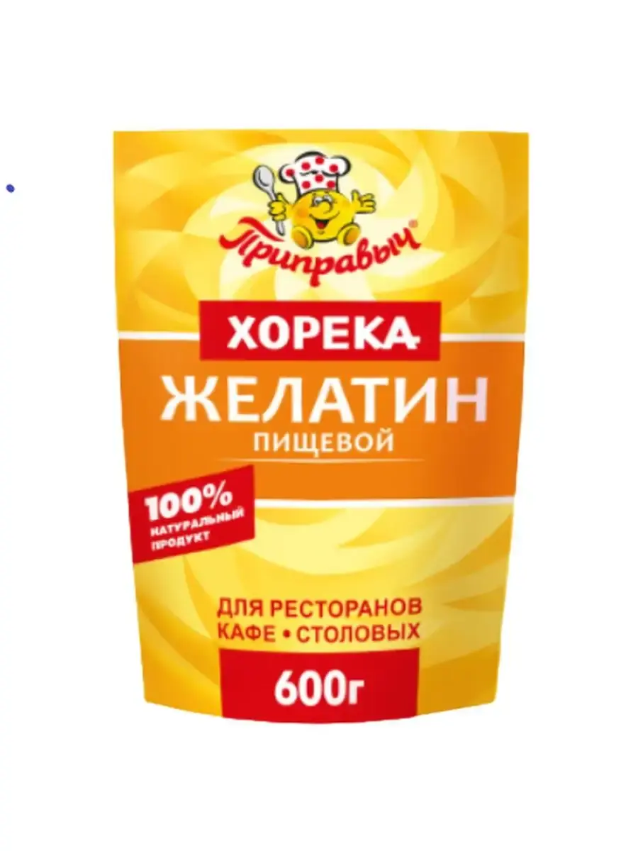 Желатин представляет собой твердый измельченный продукт светло-желтого цвета, без запаха и вкуса. Обладает большой желирующей способностью и высокой вязкостью. Желатин используется для приготовления сладких желе, мармелада,мороженого, тортов, йогуртов, а также холодцов и различных заливных блюд из мяса или рыбы.