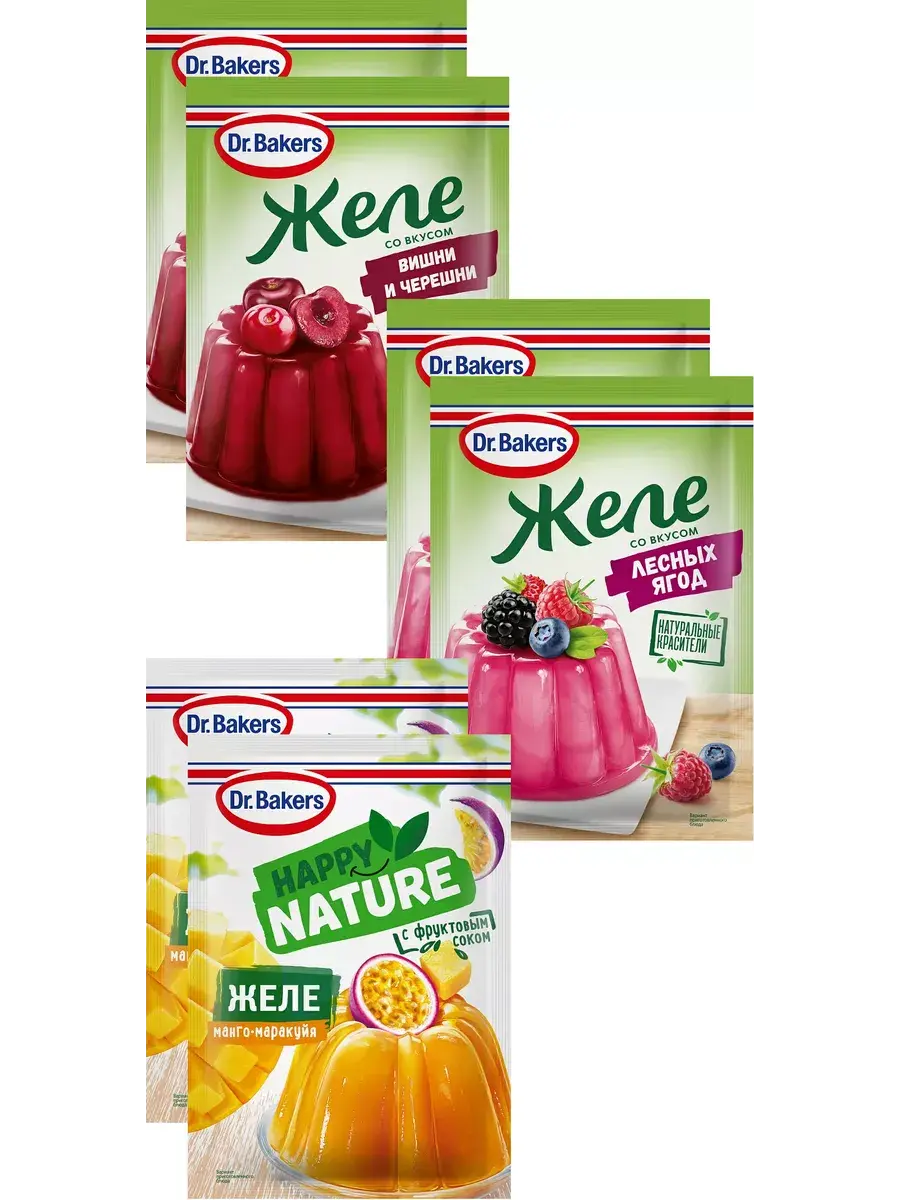 Оригинальный вкус коктейля из лесных ягод, желе Dr. Bakers 45г отличается ярким цветом, быстро застывает и держит форму. Легко готовится с добавлением 200 мл воды и не требует добавления сахара. Из застывшего желе можно приготовить десерты различной формы, многослойные, с добавлением фруктов и удивить близких и друзей необычным угощением!