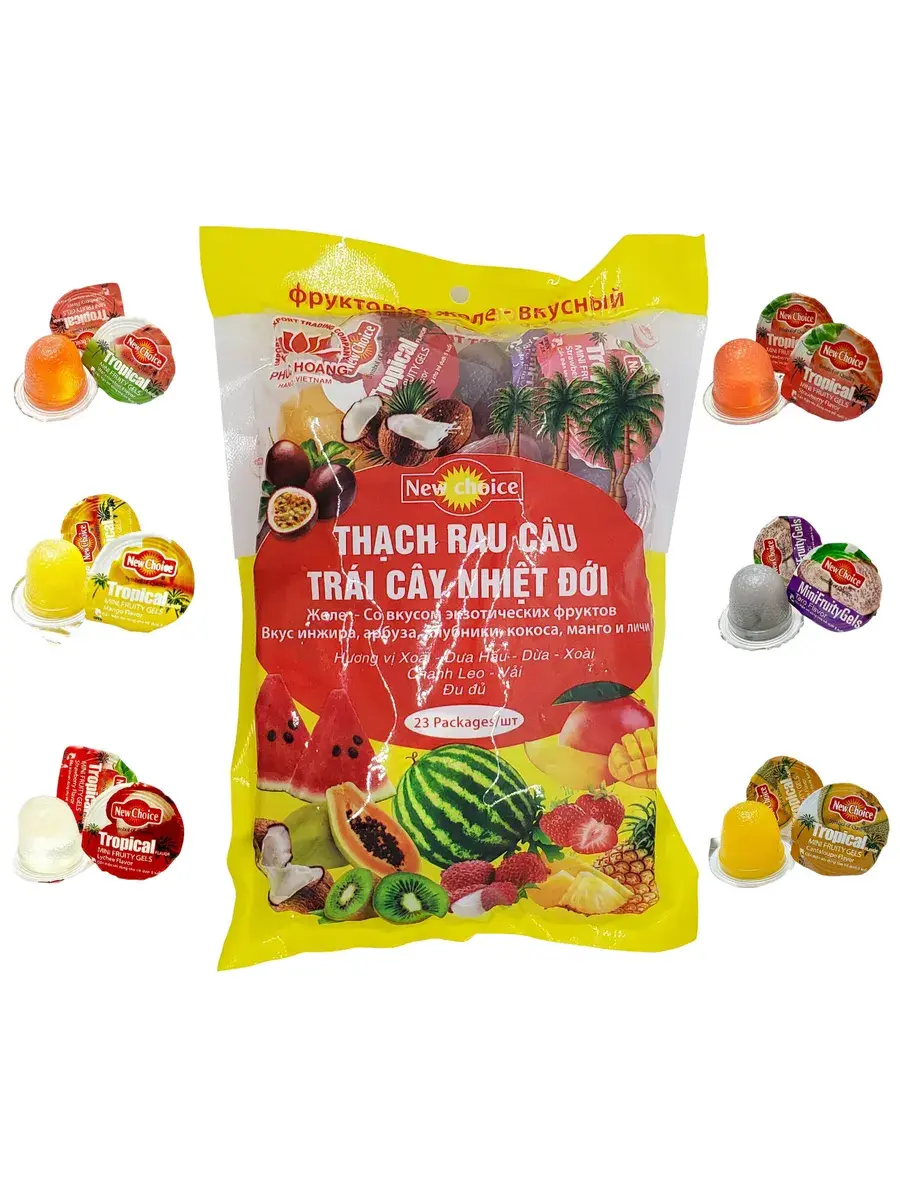 Погрузись в мир сочных экзотических фруктов с вьетнамским желе со вкусом экзотических фруктов! Каждый стаканчик – это гармония вкусов, где сплетаются сладкий арбуз, нежное личи, насыщенный манго, освежающий кокос, сочная клубника и спелый инжир. Этот десерт словно переносит тебя на солнечный тропический остров, где всегда тепло, ярко и вкусно! Лёгкий и освежающий десерт идеально подойдёт для перекуса дома, на работе или в дороге. Для детей – это весёлая радость, для взрослых – момент наслаждения и отдыха. Лёгкая текстура и натуральный вкус спелых фруктов.